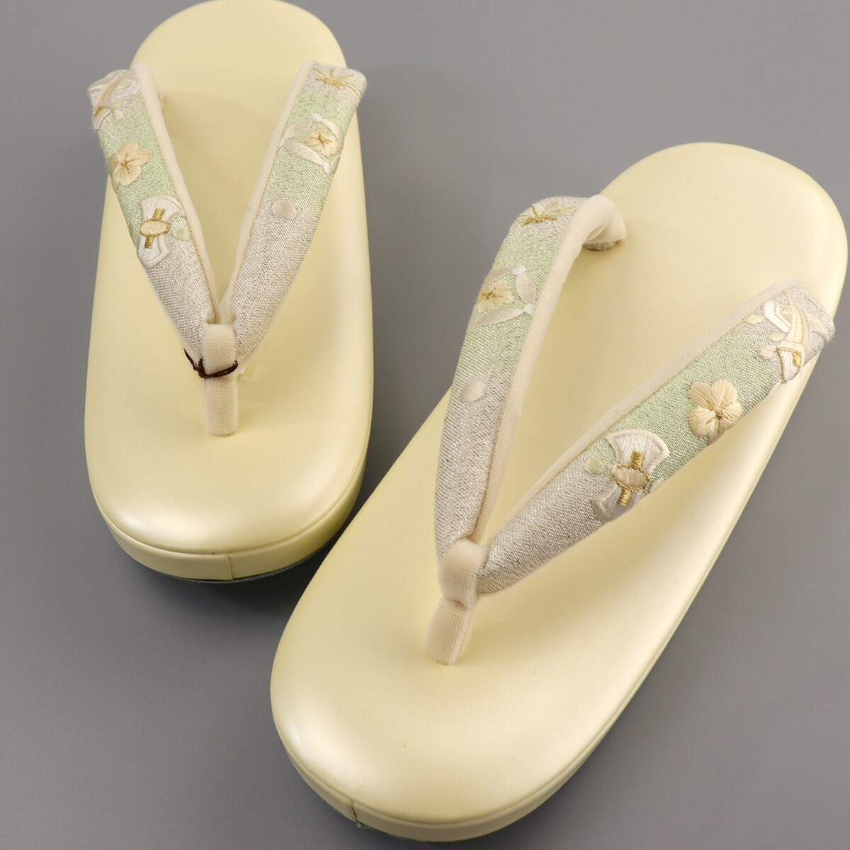 衿秀 公式 草履 ぞうり 刺繍 晴雨 晴雨兼用 シンデレラ ガラスの靴 オフホワイト M シャレ 普段着 履きやすい 防水 日本製 襟の衿秀 sp