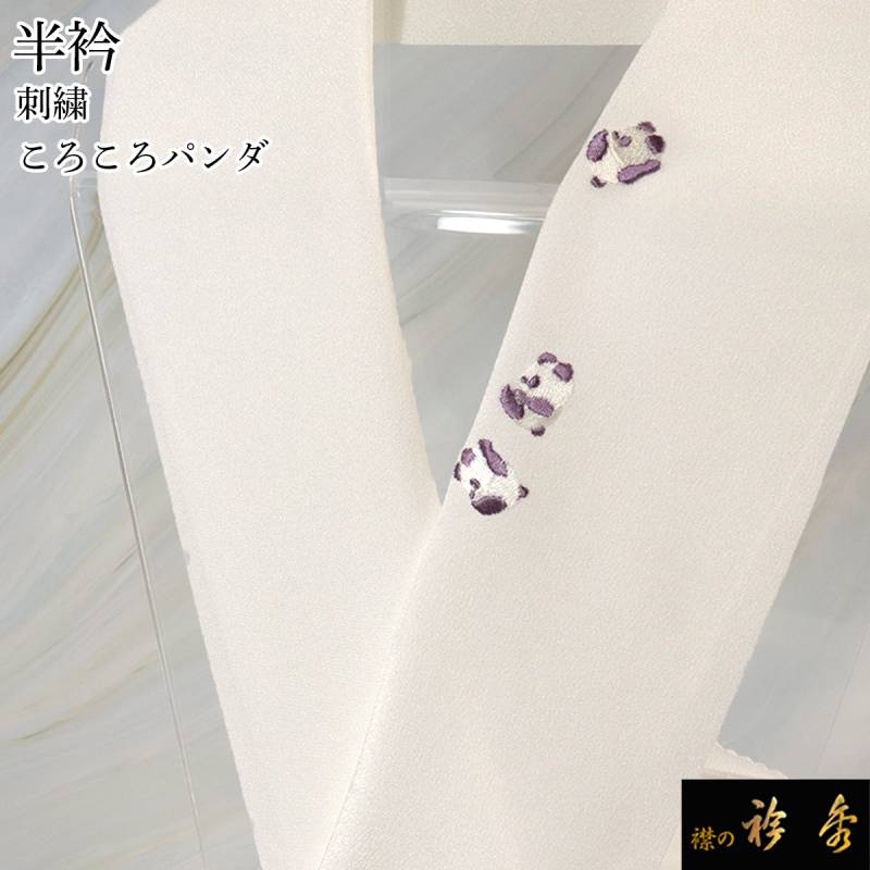 衿秀 公式 半衿 はんえり 刺繍 ワンポイント ころころパンダ パープル 白地 洗える ポリエステル 日本製 和装小物 和小物 えりひで 襟の衿秀