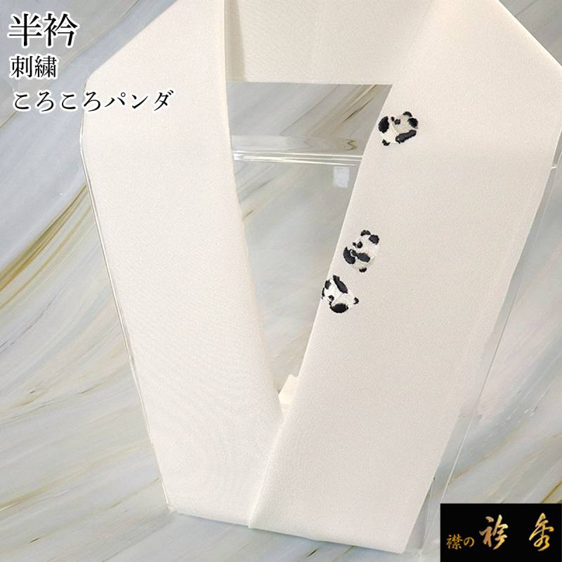 衿秀 公式 半衿 はんえり 刺繍 パンダ ぱんだ 白地 洗える ポリエステル 日本製 和装小物 和小物 えりひで 襟の衿秀