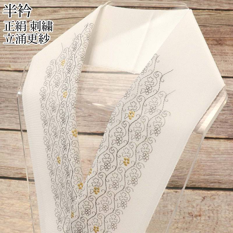 衿秀 公式 半衿 はんえり 刺繍 ダマスク柄 洋柄 丁子色 薄赤茶色 芥子色 白地 洗える ポリエステル 日本製 和装小物 和小物 えりひで 襟の衿秀