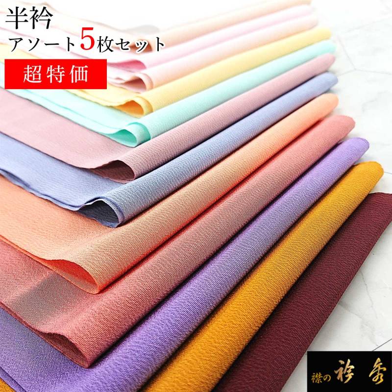 衿秀 公式 半衿 5枚セット 1000円 アソート 送料無料 ぽっきり 半襟 はんえり 白 カラー 塩瀬 洗える 日本製 えりひで eh tb