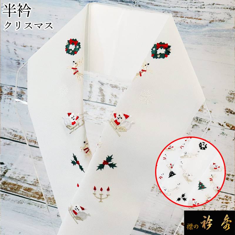 衿秀 公式 半衿 はんえり クリスマス Xmas Christmas サンタ トナカイ 白地 洗える ポリエステル 日本製 和装小物 和小物 えりひで 襟の衿秀
