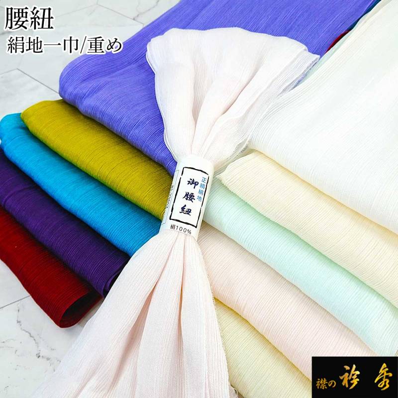 衿秀 公式 腰紐 絹 絹地 きんち 楊柳 腰ひも 重め 一巾 ピンク パープル ベージュ グリーン 着付け小物 着物 和装小物 日本製 和小物 襟の衿秀 tb