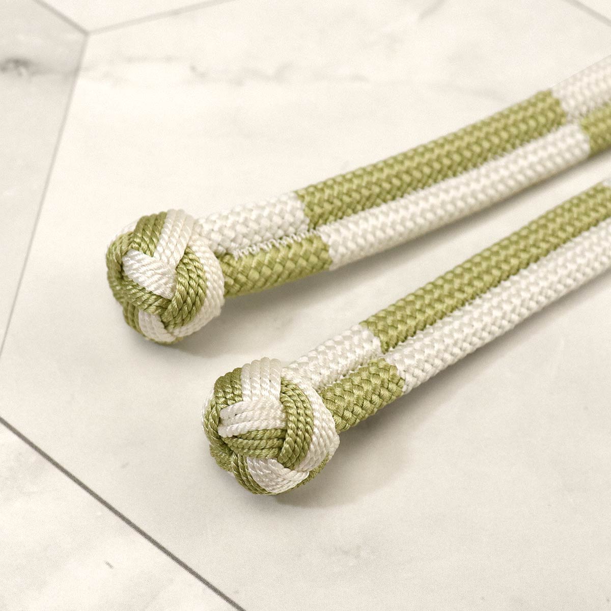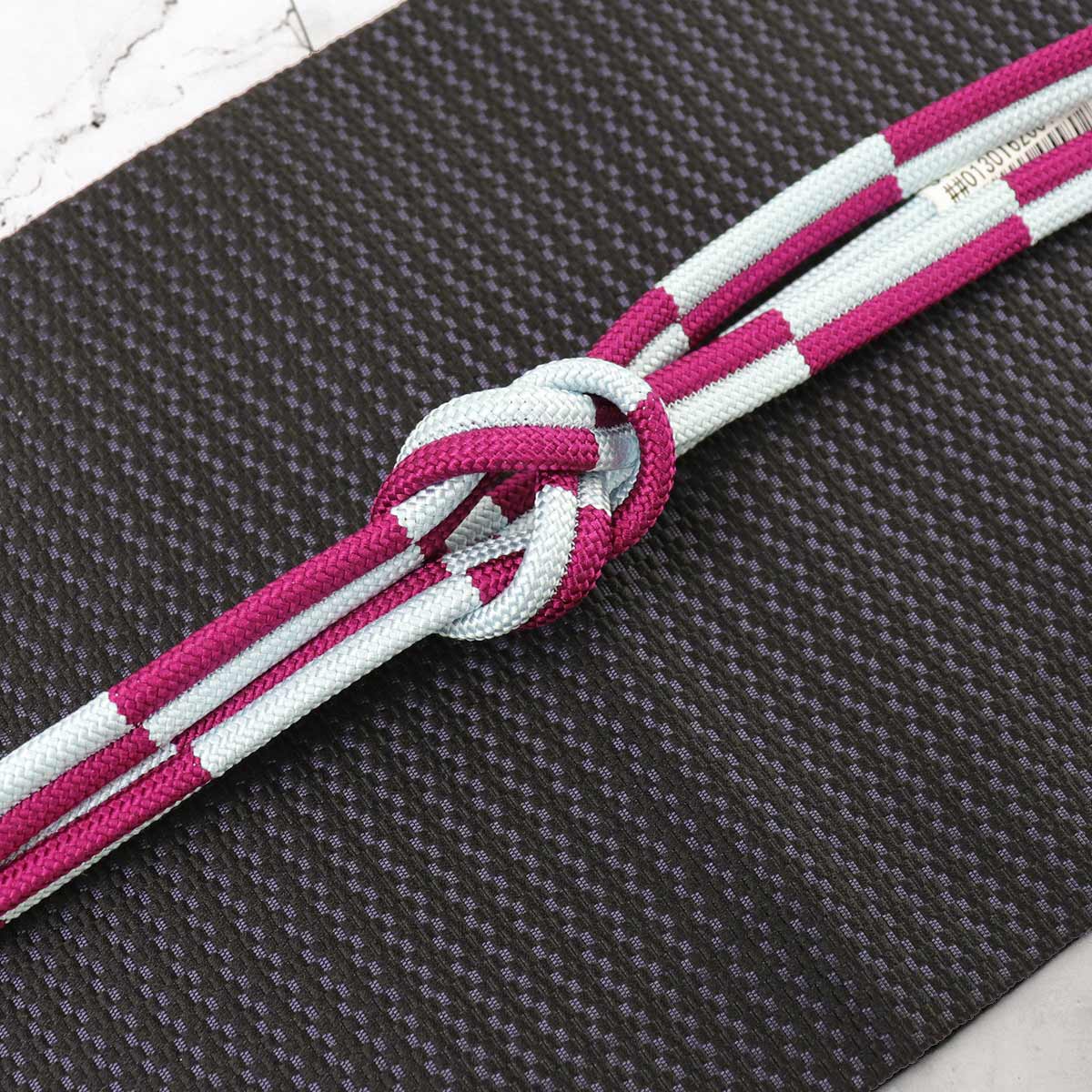 細く組んだ平唐組を市松柄になるよう、2本合わせた帯締めです。
