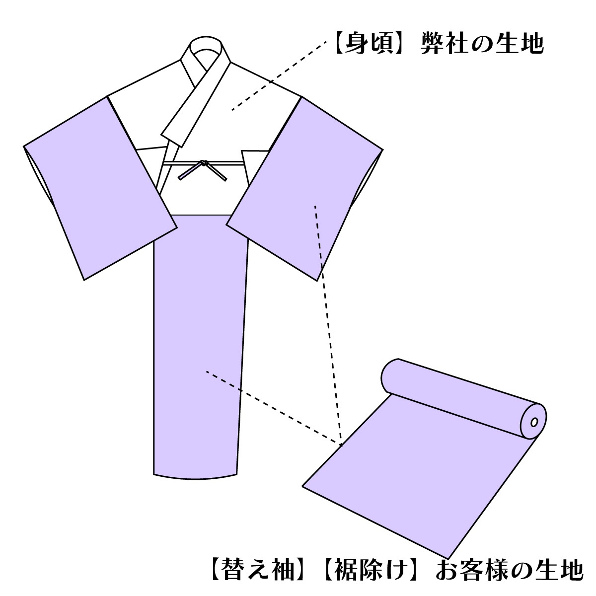 また、居敷当ての生地はお客様自身でご用意いただきますようお願い申し上げます。