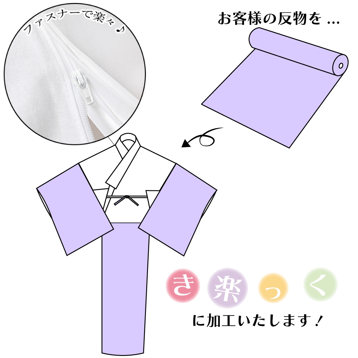 お客様の生地をき楽っく仕様に加工いたします。
