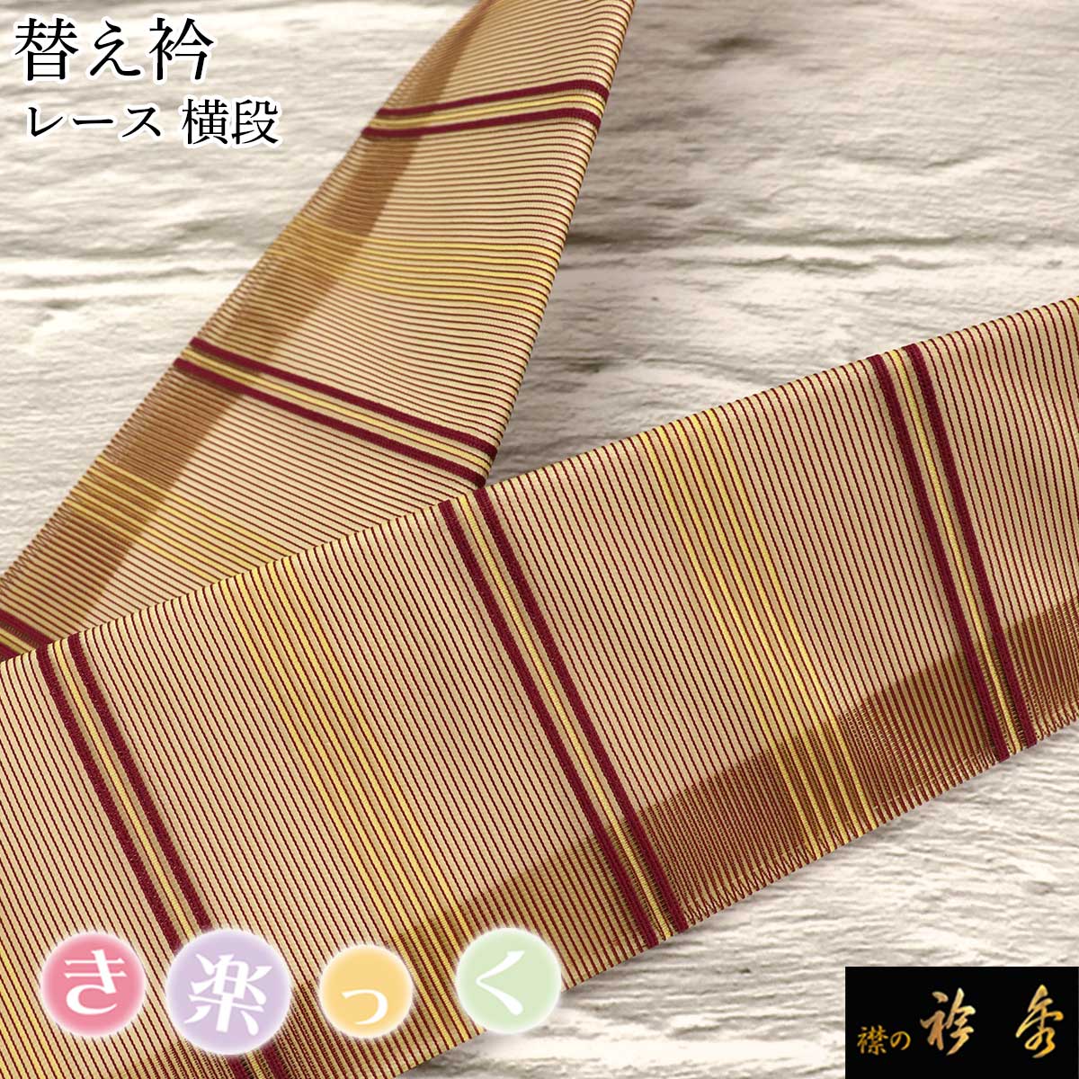 衿秀 公式 き楽っく 替え衿 替衿 かええり テキスタイル 横段 ボーダー ベージュ系 綿麻 半衿 きらっく 洗える 日本製 和装小物 えりひで 襟の衿秀 きものすなお