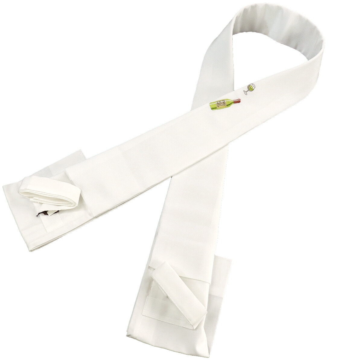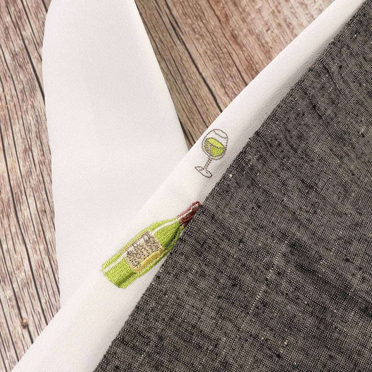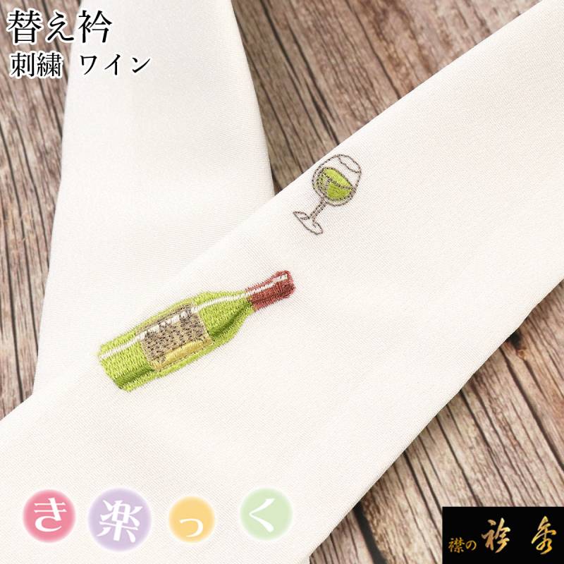 白地の半衿にワインボトルとグラスが刺繍されています。