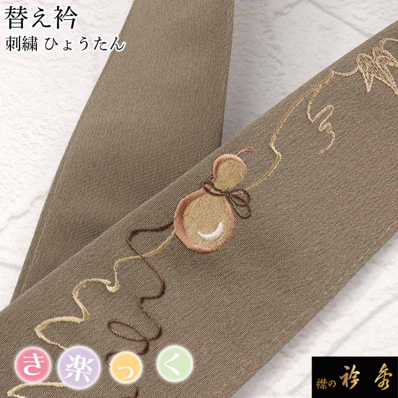 衿秀 公式 き楽っく 替え衿 替衿 かええり 刺繍 瓢箪 ひょうたん 錆利休 ブラウン 半衿 きらっく 洗える 日本製 和装小物 えりひで すなお きものすなお