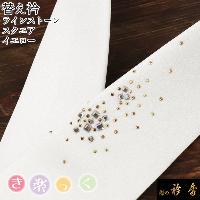 衿秀 公式 き楽っく 替え衿 替衿 かええり クリスタルストーン ラインストーン スクエア 白 イエロー きらっく 日本製 和装小物 えりひで 襟の衿秀 きものすなお