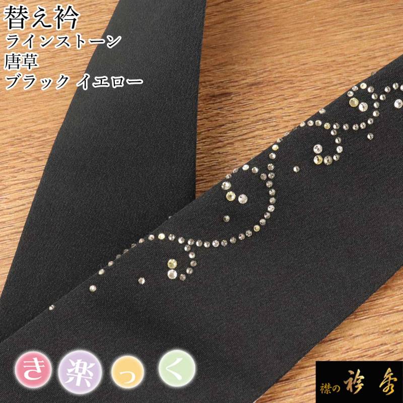 衿秀 公式 き楽っく 替え衿 替衿 かええり クリスタルストーン ラインストーン 唐草 黒地 イエロー きらっく 日本製 和装小物 えりひで 襟の衿秀 きものすなお