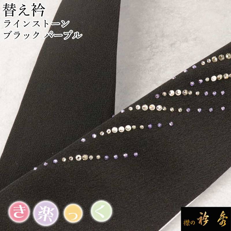 衿秀 公式 き楽っく 替え衿 替衿 かええり クリスタルストーン ラインストーン 唐草 黒地 パープル きらっく 日本製 和装小物 えりひで 襟の衿秀 きものすなお