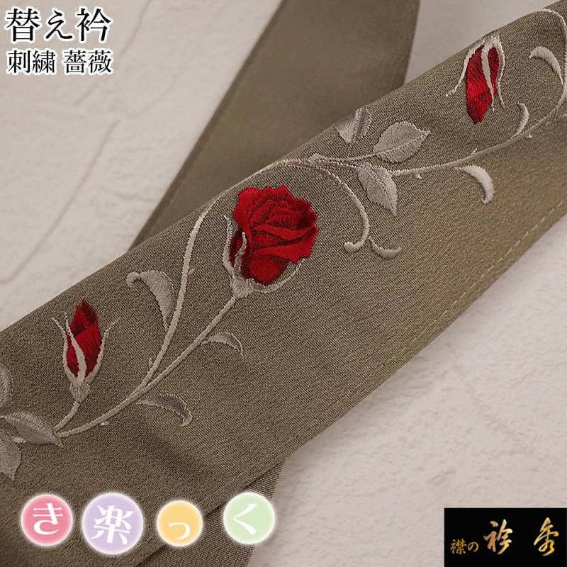 衿秀 公式 き楽っく 替え衿 替衿 かええり 刺繍 薔薇 バラ 錆利休地 半衿 はんえり きらっく 洗える 日本製 和装小物 えりひで すなお きものすなお