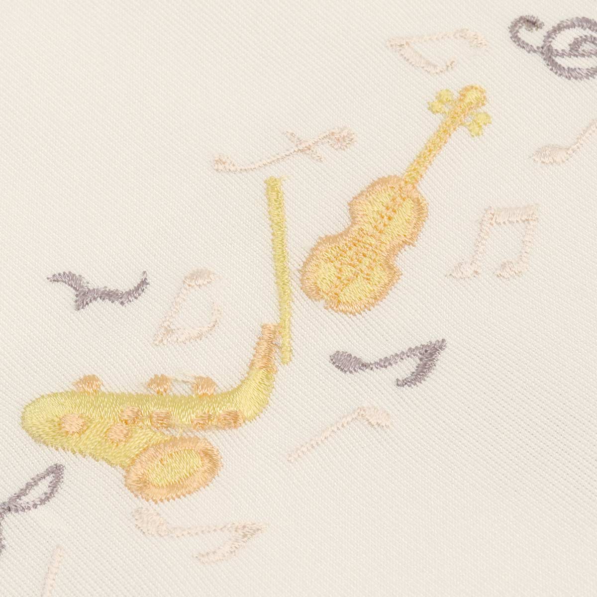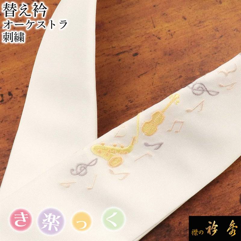 楽器や音符の図案を刺繍したワンポイント替え衿です。