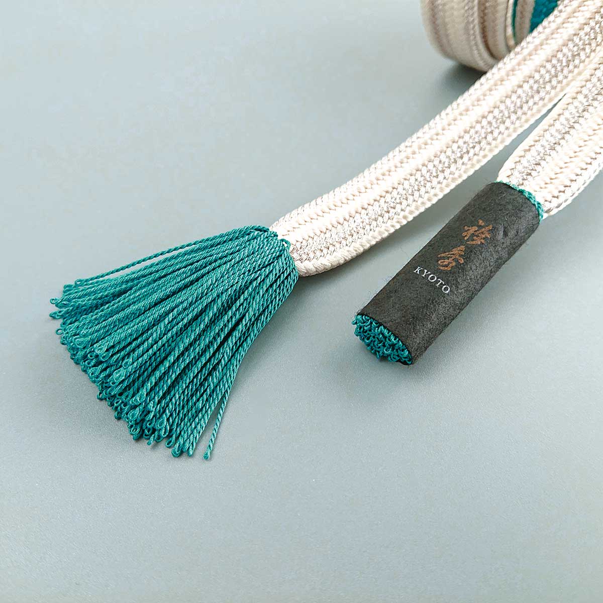 銀のラインがシャープで綺麗な帯締めです。