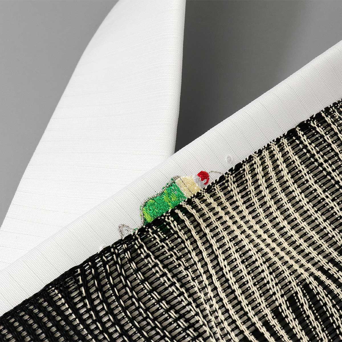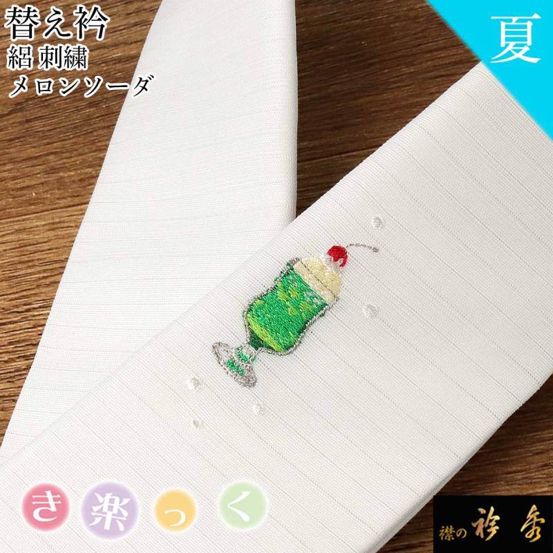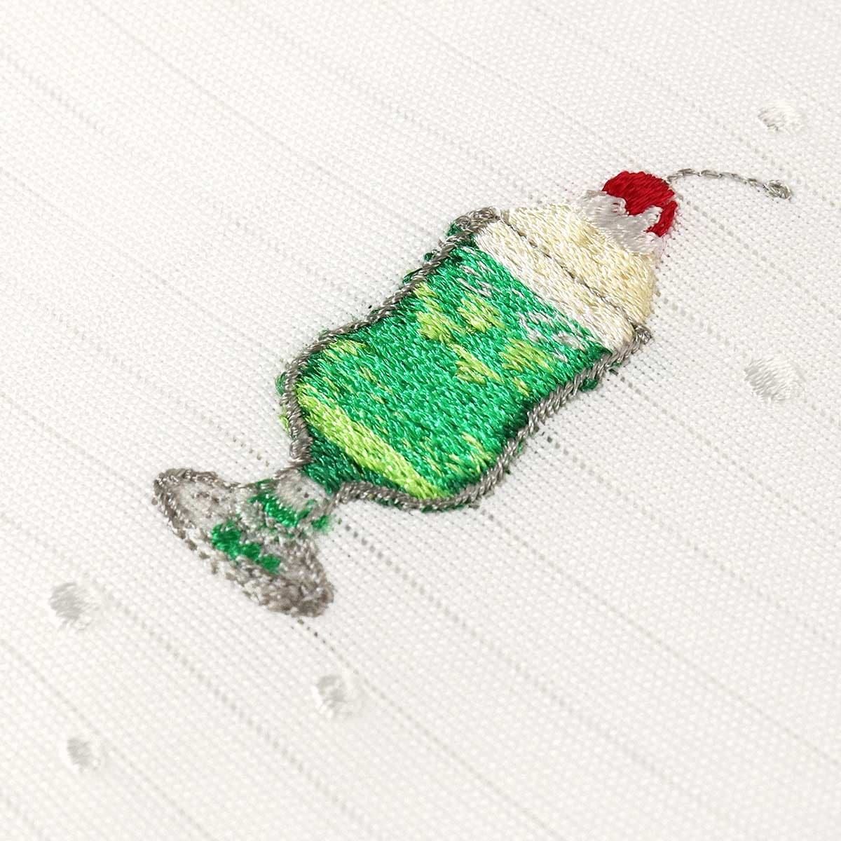 白地の絽生地にレトロなメロンソーダ柄を刺繍しました♪