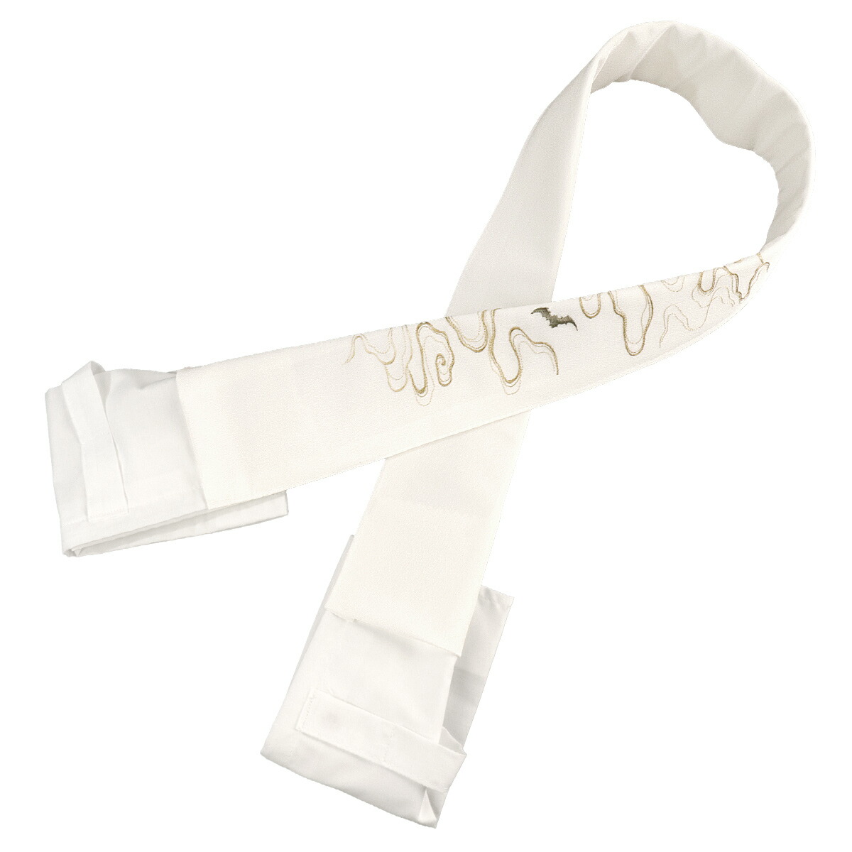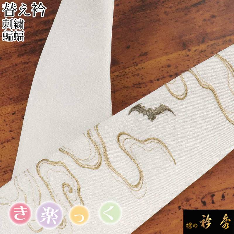 白色の半衿に、蝙蝠の柄を刺繍で表現しました。