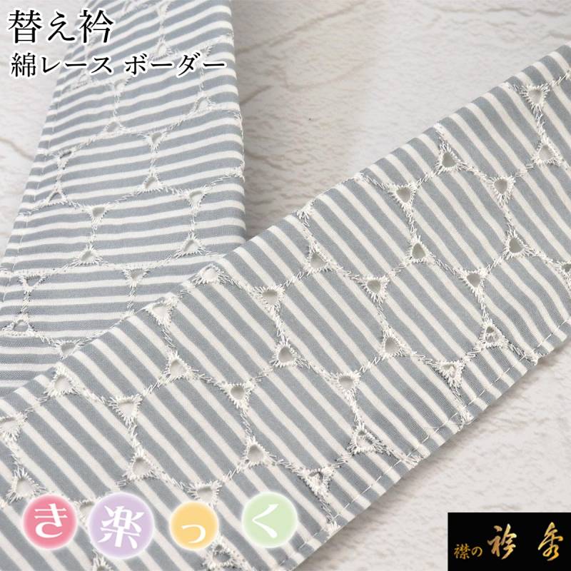 衿秀 公式 き楽っく 替え衿 替衿 かええり 綿 コットン ブルー 水玉 ボーダー 半衿 はんえり きらっく 洗える 日本製 和装小物 えりひで 襟の衿秀 きものすなお
