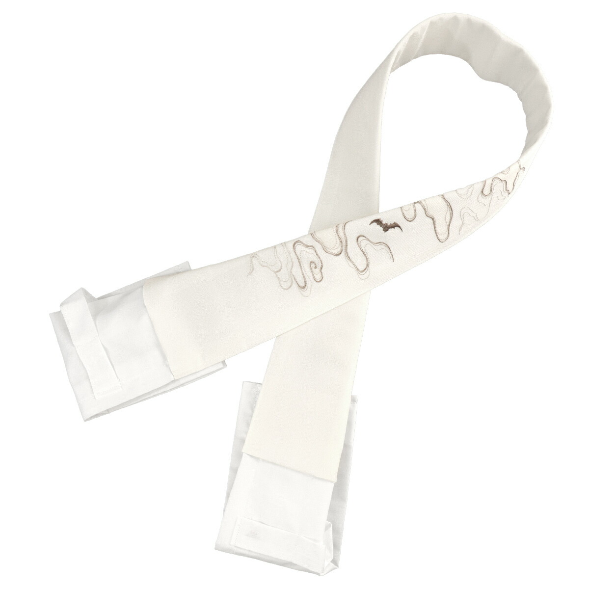 白色の半衿に、蝙蝠の柄を刺繍で表現しました。