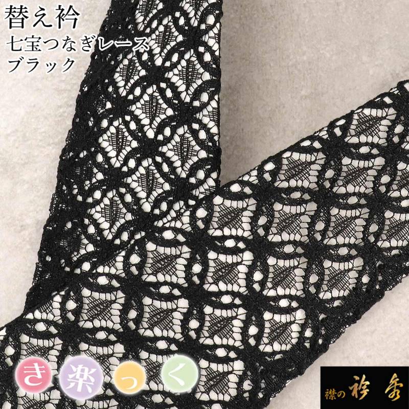 衿秀 公式 き楽っく 替え衿 替衿 かええり レース ブラック 黒 七宝つなぎ テキスタイル 洒落 きらっく 日本製 和装小物 えりひで 襟の衿秀 きものすなお