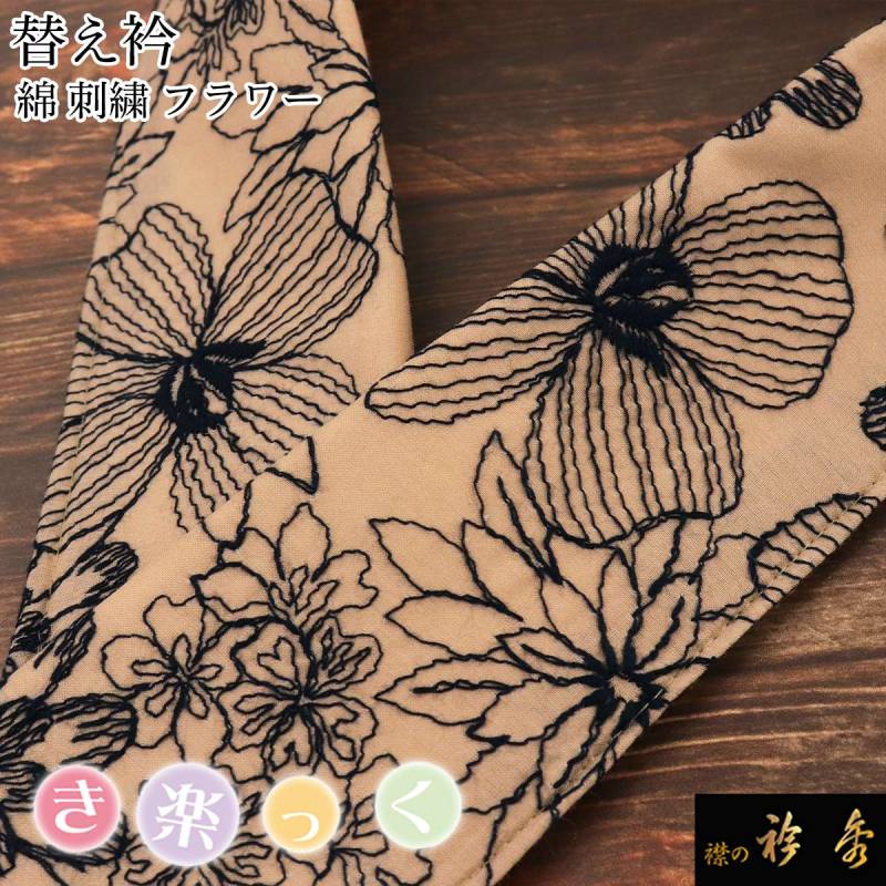 衿秀 公式 き楽っく 替え衿 替衿 かええり 刺繍 花柄 ブラウン 綿 コットン 半衿 きらっく 洗える 日本製 和装小物 えりひで 襟の衿秀 きものすなお