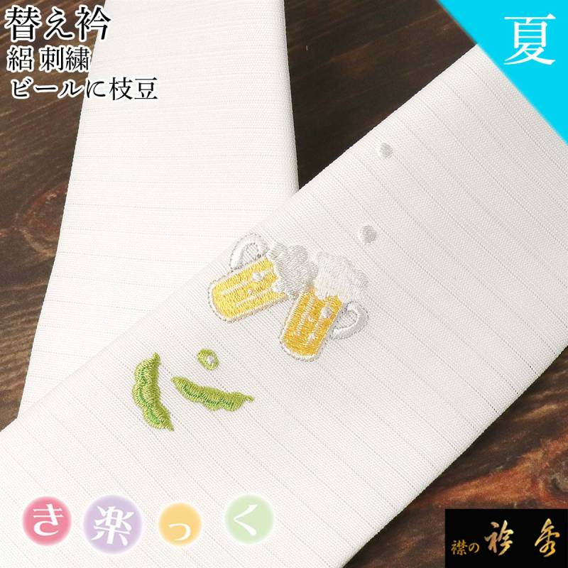 衿秀 公式 き楽っく 替え衿 替衿 かええり 絽 夏 刺繍 ビール 枝豆 白 レトロ 半衿 きらっく 洗える 日本製 和装小物 えりひで 襟の衿秀 すなお きものすなお