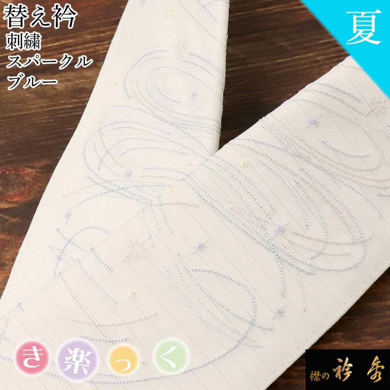 衿秀 公式 き楽っく 替え衿 替衿 かええり 夏 絽 刺繍 スパークル ブルー きらっく 洗える 日本製 和装小物 えりひで 襟の衿秀 すなお きものすなお