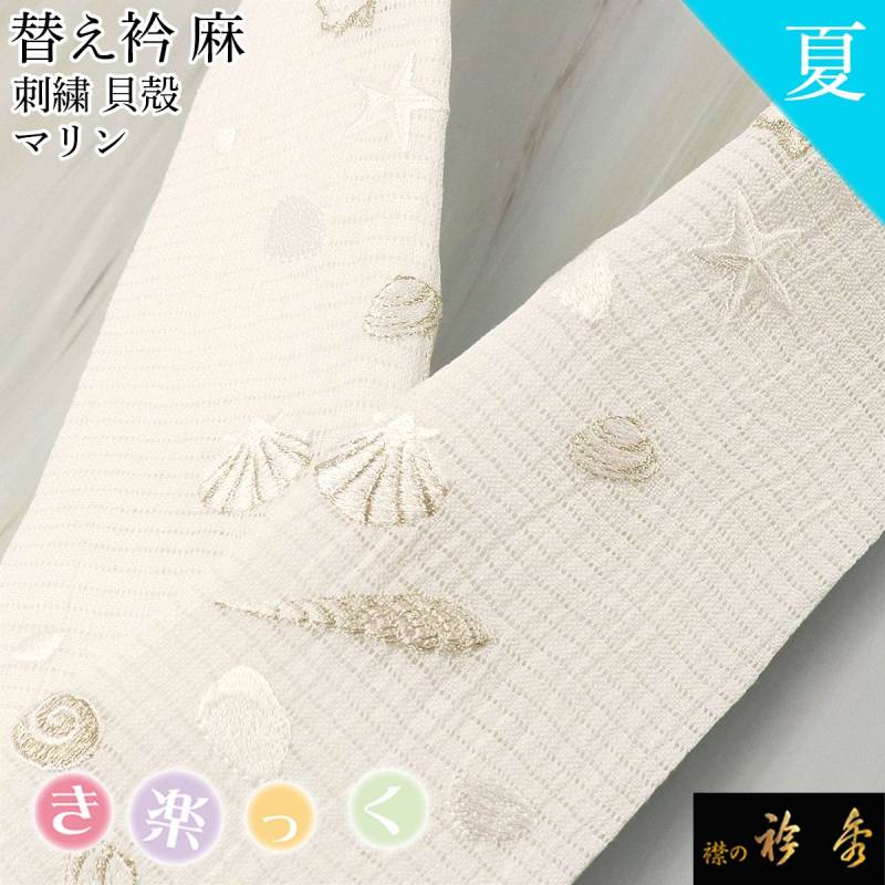 衿秀 公式 き楽っく 替え衿 替衿 かええり 夏 絽 刺繍 麻 貝殻 マリン 白金 きらっく 日本製 和装小物 えりひで 襟の衿秀 すなお きものすなお