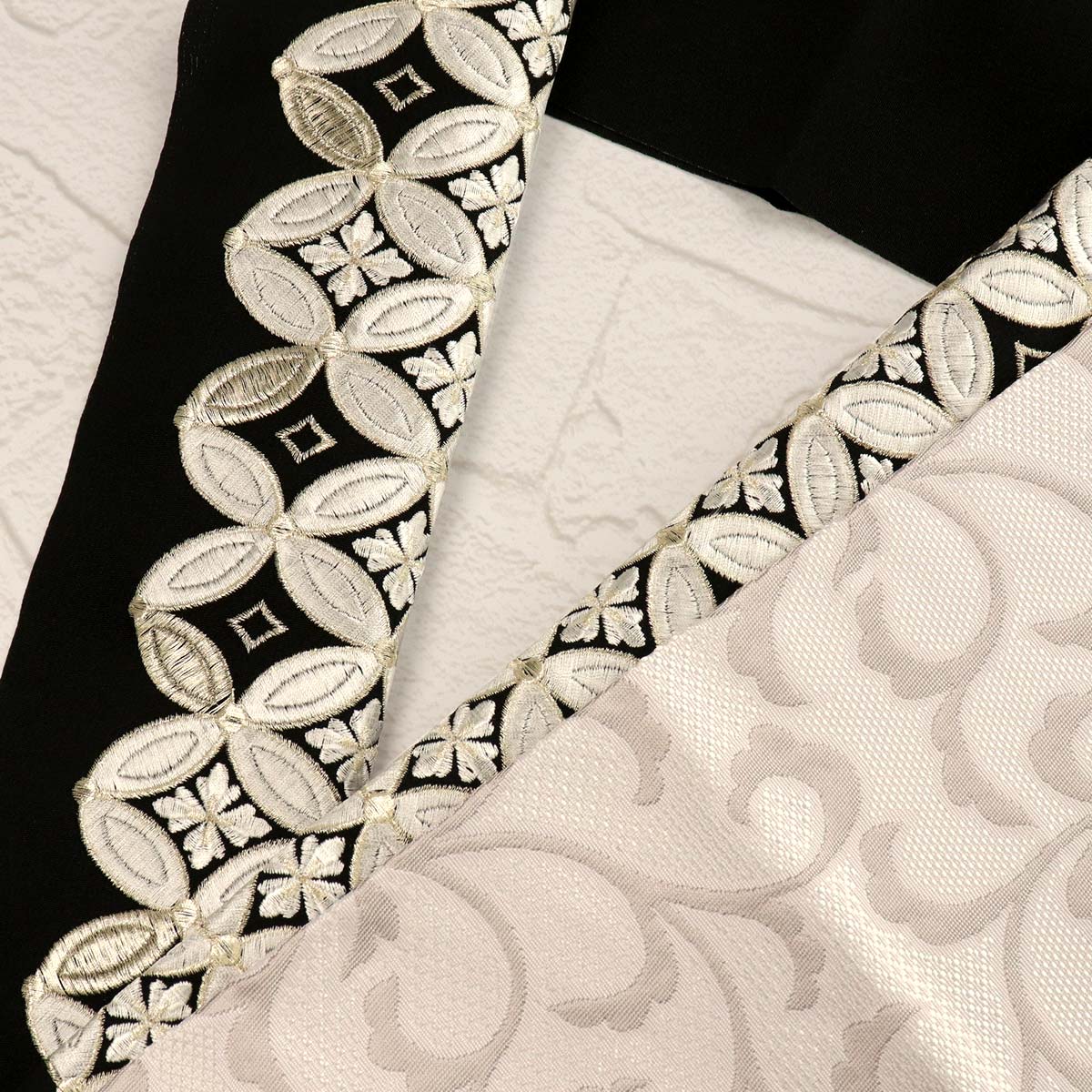 繊細なジャガード刺繍で大七宝柄を表現しています。