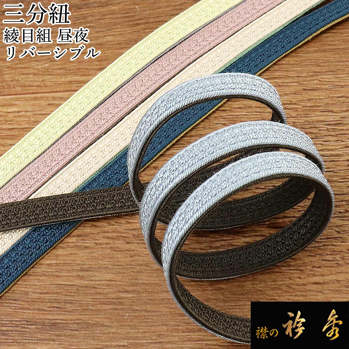 衿秀 公式 三分紐 さんぶひも 角朝組 昼夜 リバーシブル 帯締め おびしめ 普段着 正絹 日本製 和装小物 和小物 えりひで 襟の衿秀