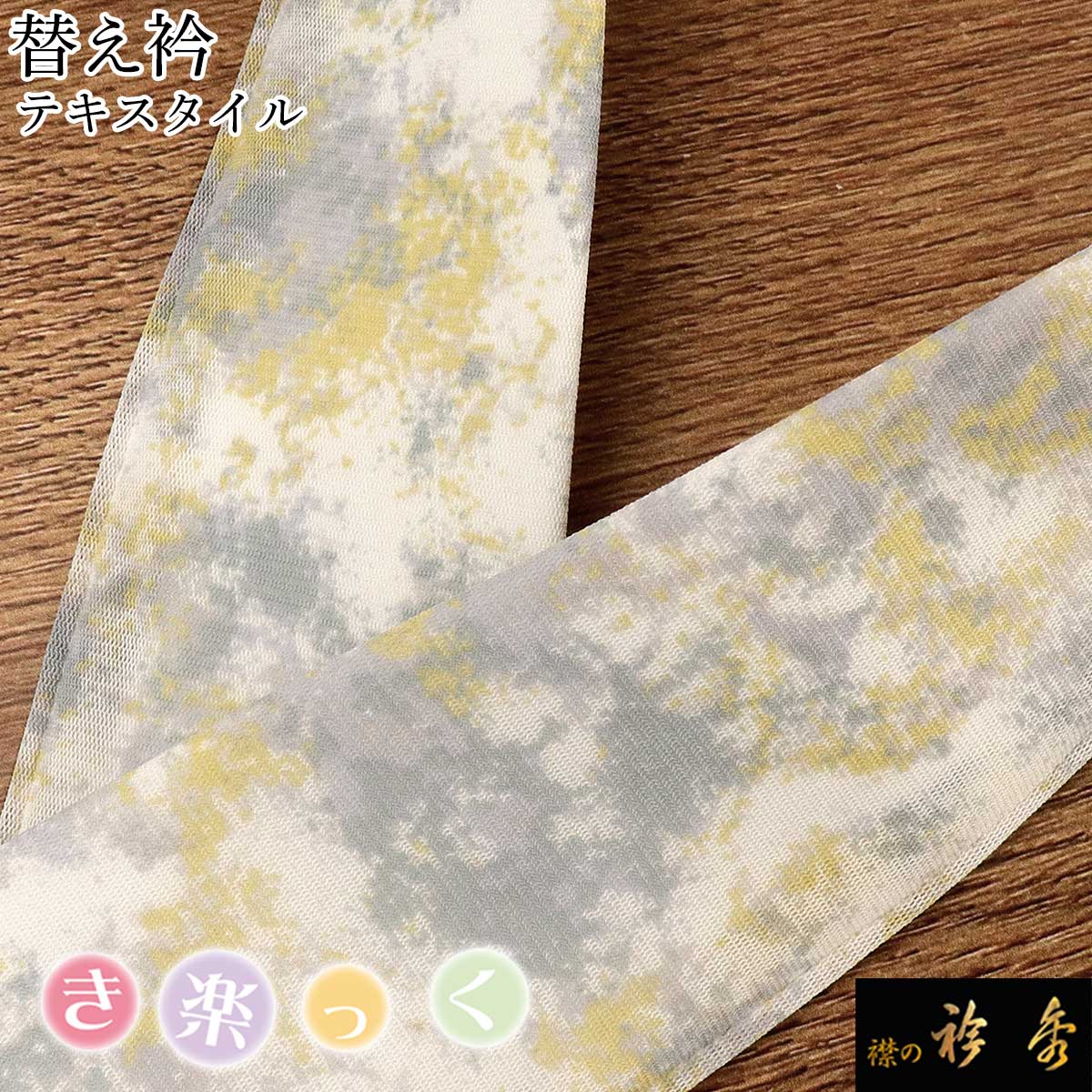 衿秀 公式 き楽っく 替え衿 替衿 かええり テキスタイル 水彩 オレンジイエロー 半衿 きらっく 洗える 日本製 和装小物 えりひで 襟の衿秀 きものすなお