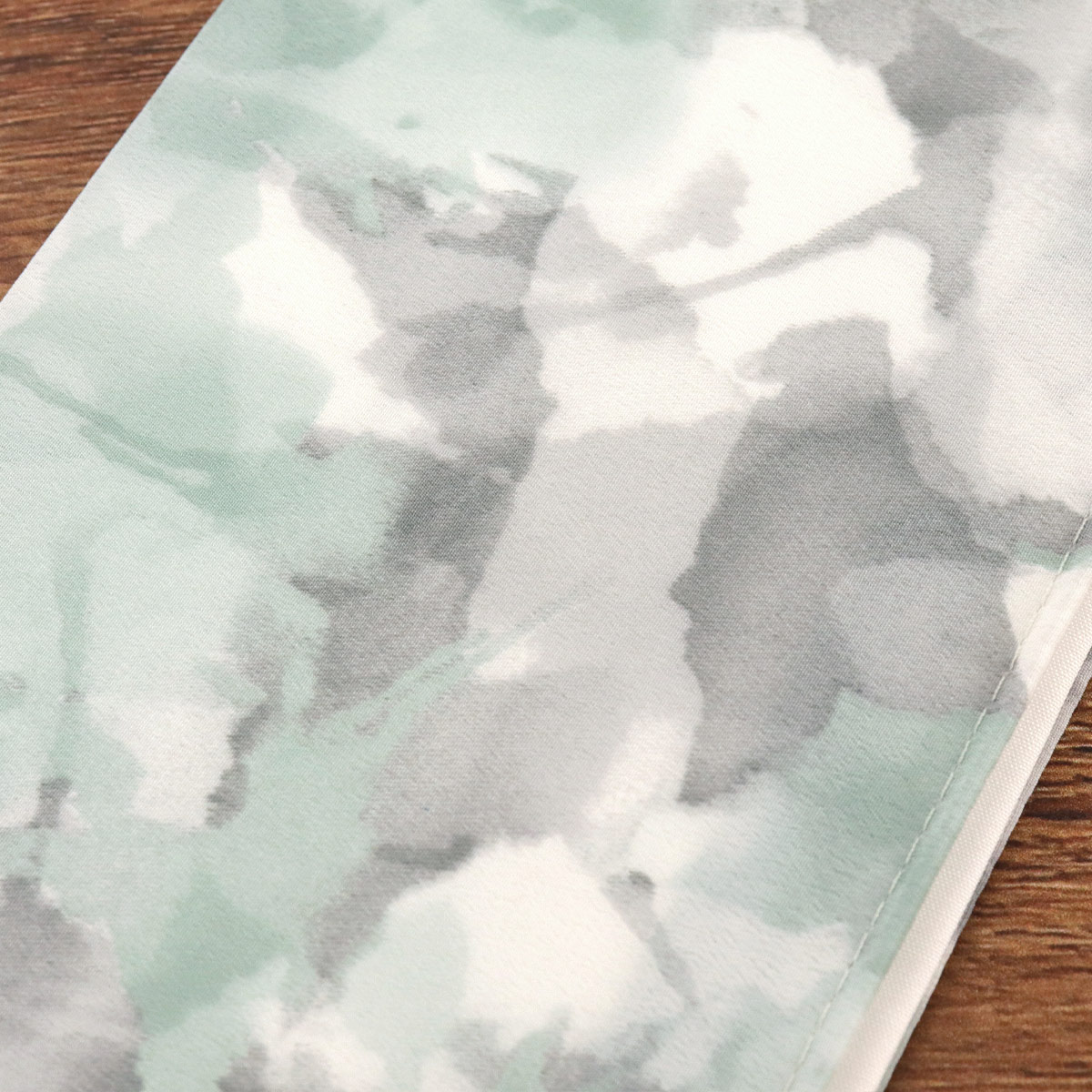 グリーン系の優しい水彩柄がオシャレな生地。