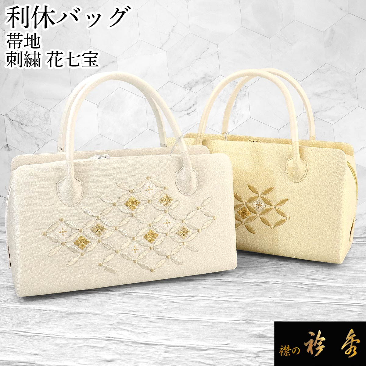 衿秀 公式 バッグ 和装 着物 利休 ばっぐ bag 縮緬 刺繍 花七宝柄 正絹 日本製 和装小物 和小物 えりひで 襟の衿秀