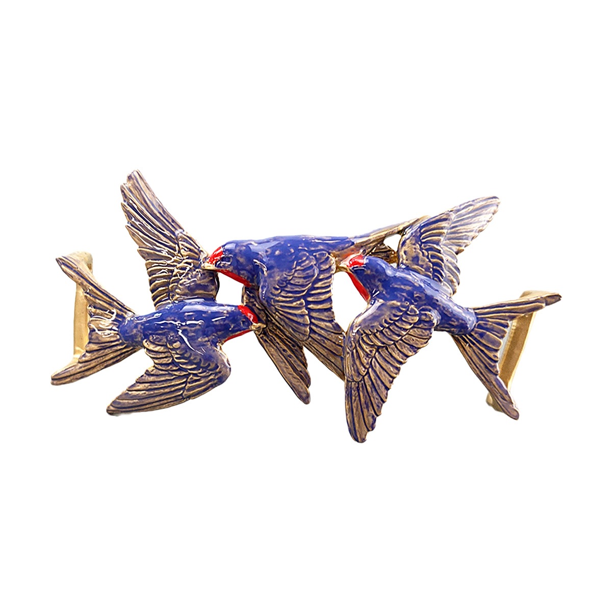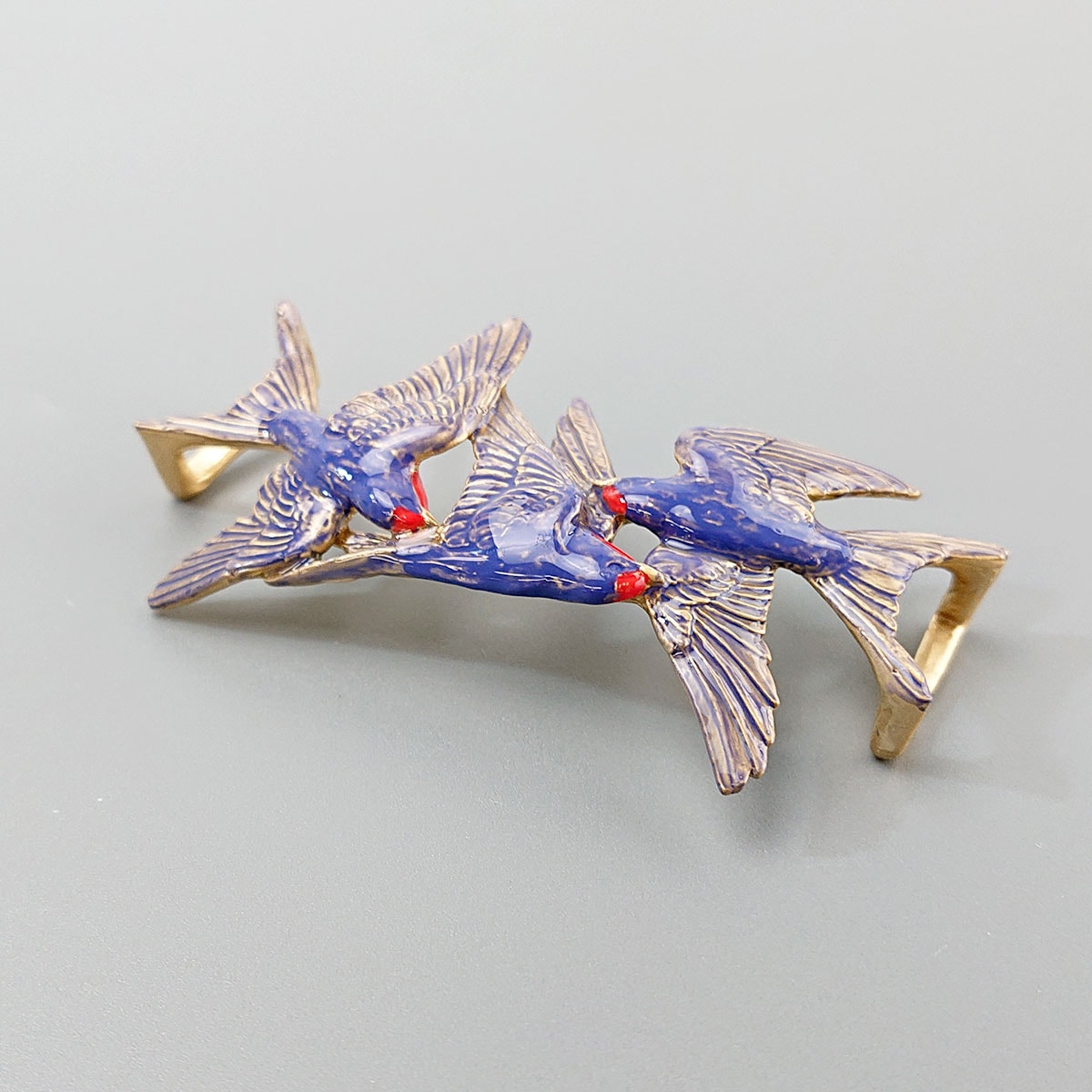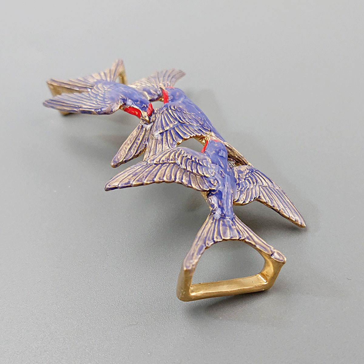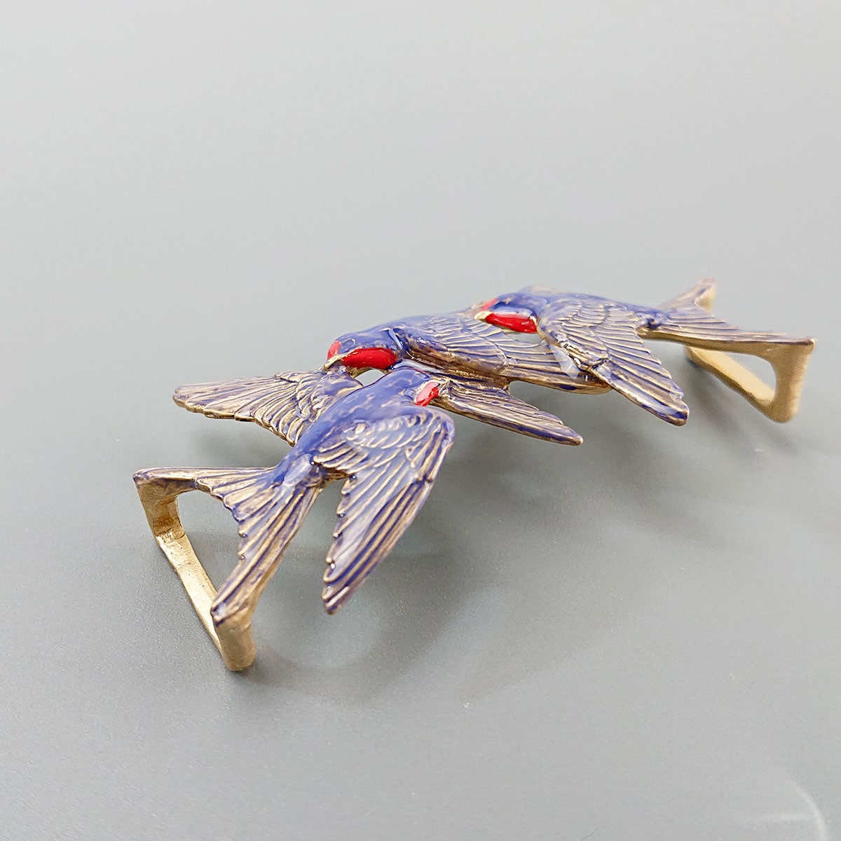 三羽の燕が飛び交う様子を表現した帯留め。