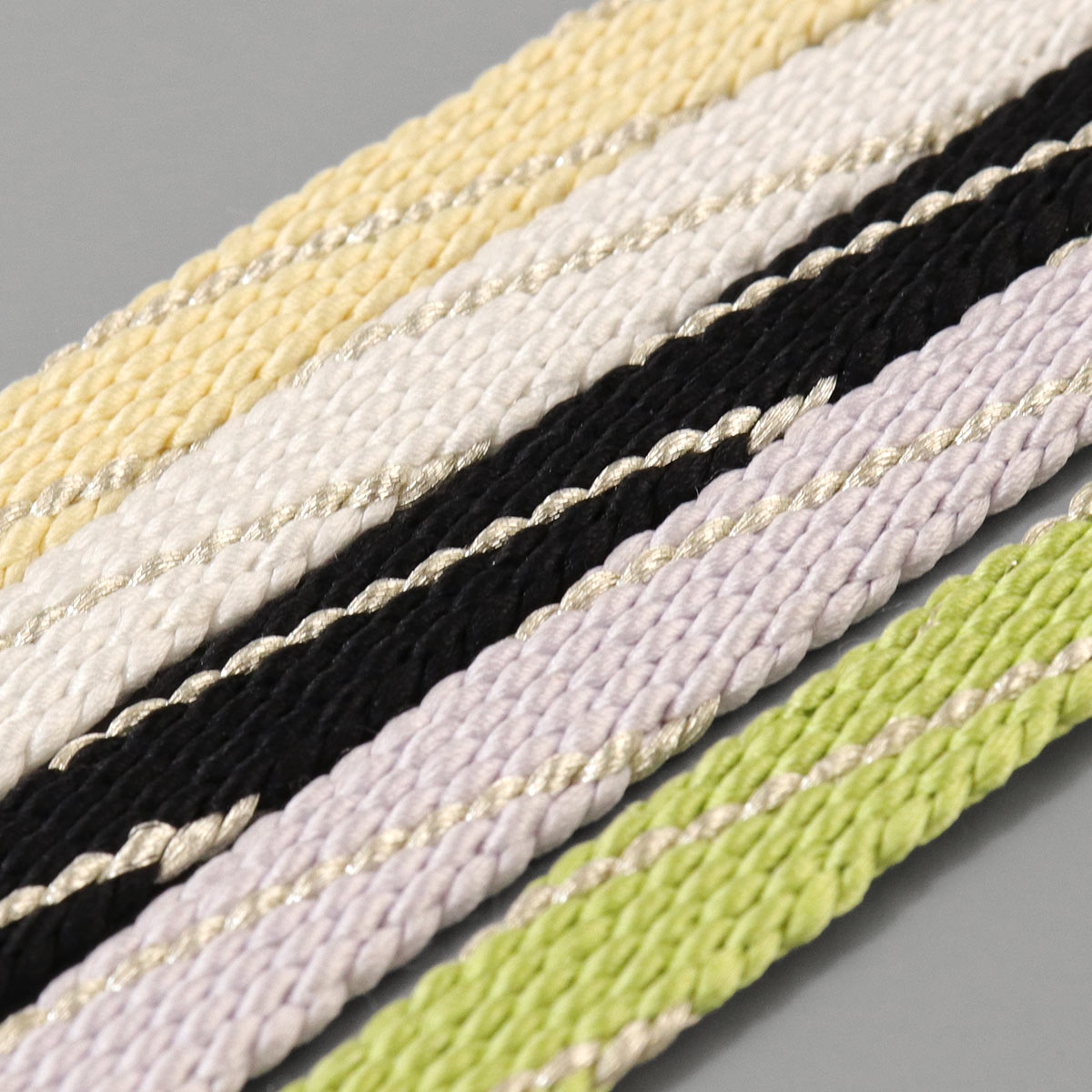 銀ラインが入った手組みの三分紐です。