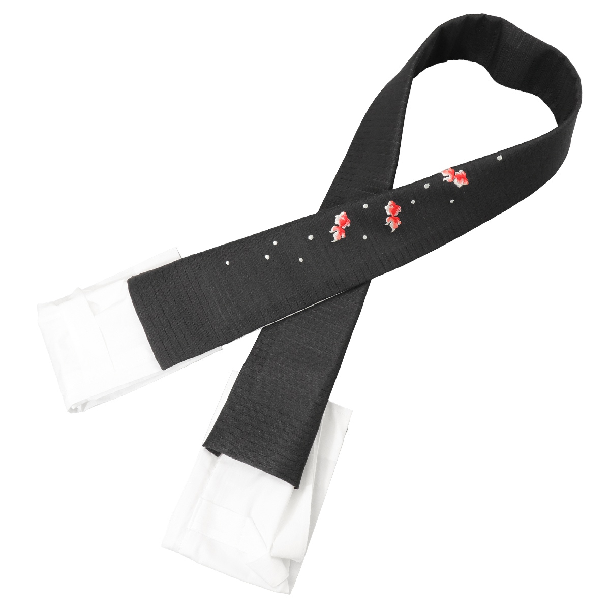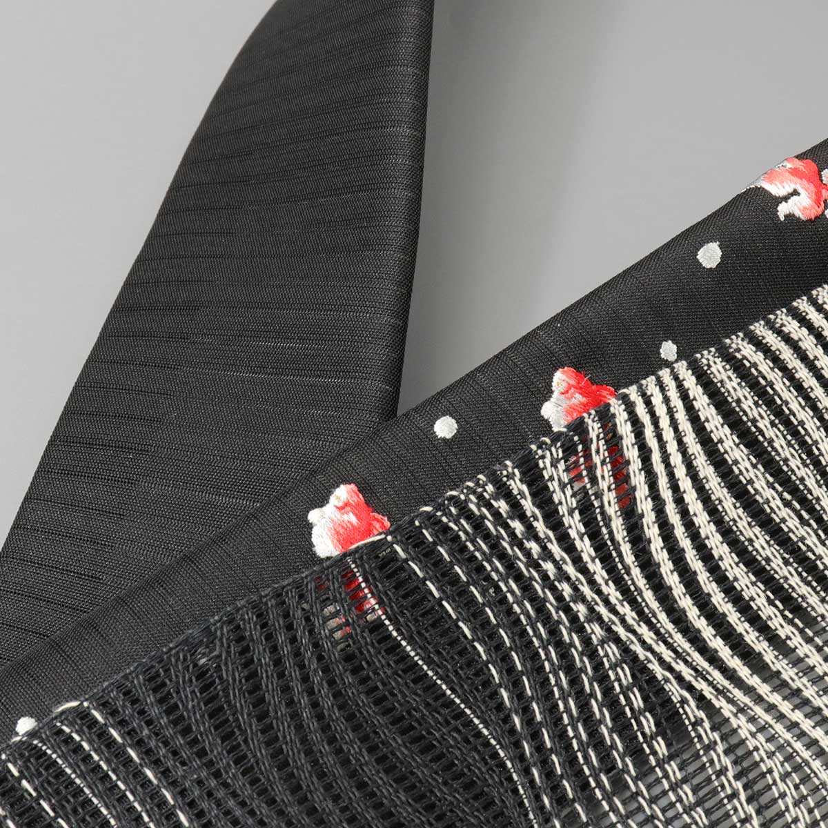 黒地の絽の生地に金魚の柄を刺繍で表現しました。