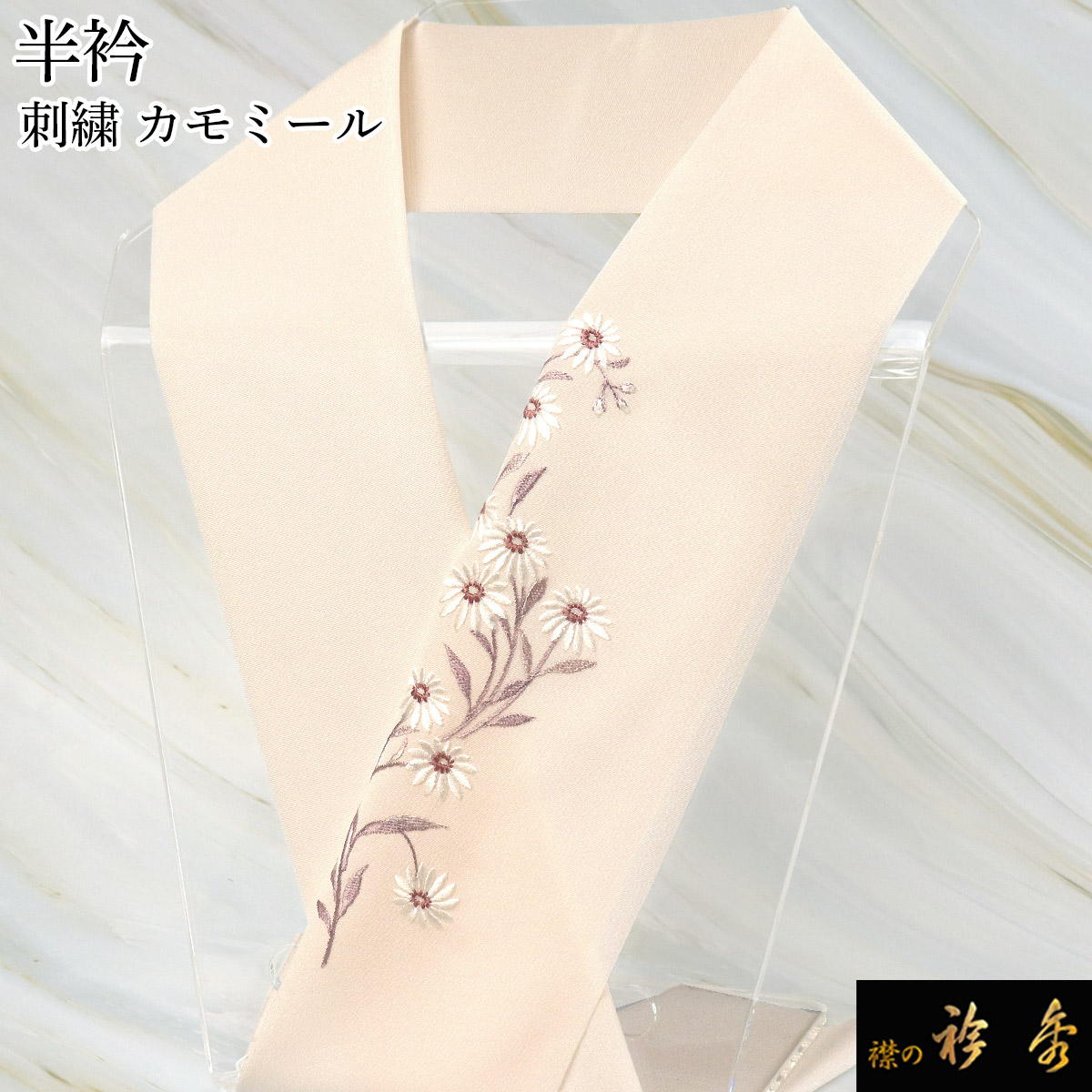 衿秀 公式 半衿 はんえり カモミール 花 梅鼠色 白地 洗える ポリエステル 日本製 和装小物 和小物 えりひで 襟の衿秀