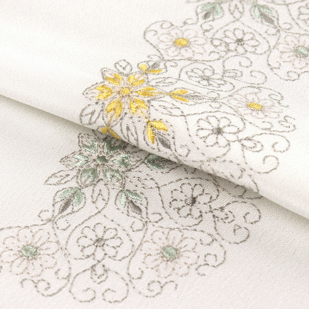 グレー系の糸で刺繍されています。