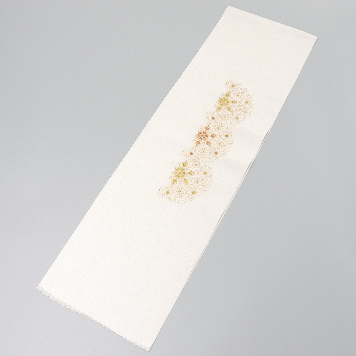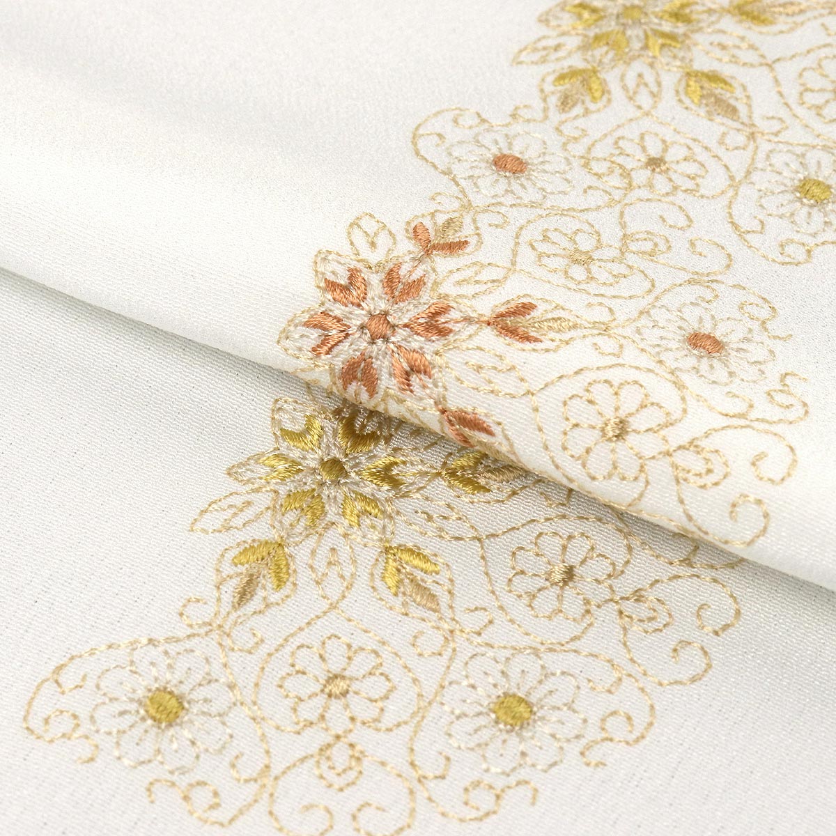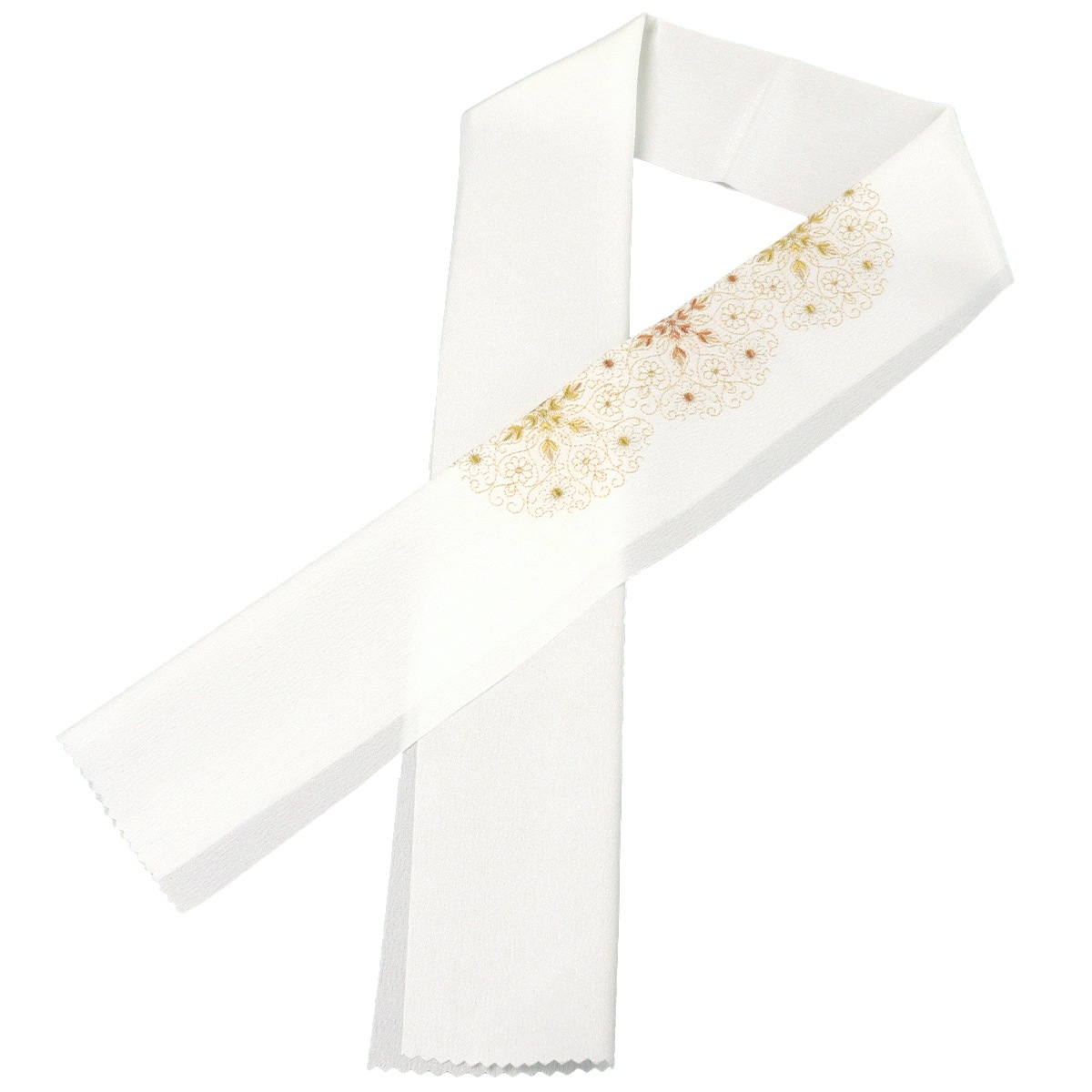 衿秀 公式 半衿 はんえり 刺繍 ダマスク柄 洋柄 市紅茶 薄オレンジ色 裏葉色 白地 洗える ポリエステル 日本製 和装小物 和小物 えりひで 襟の衿秀
