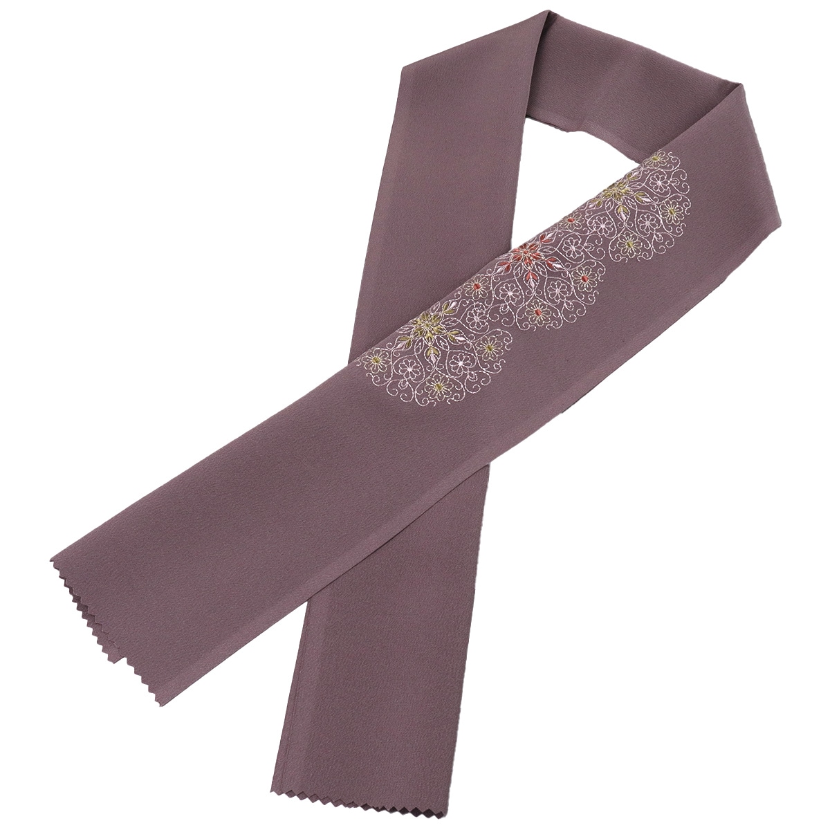 衿秀 公式 半衿 はんえり 刺繍 ダマスク柄 洋柄 グレージュ 芥子色 オレンジ色 えんじ地 洗える ポリエステル 日本製 和装小物 和小物 えりひで 襟の衿秀