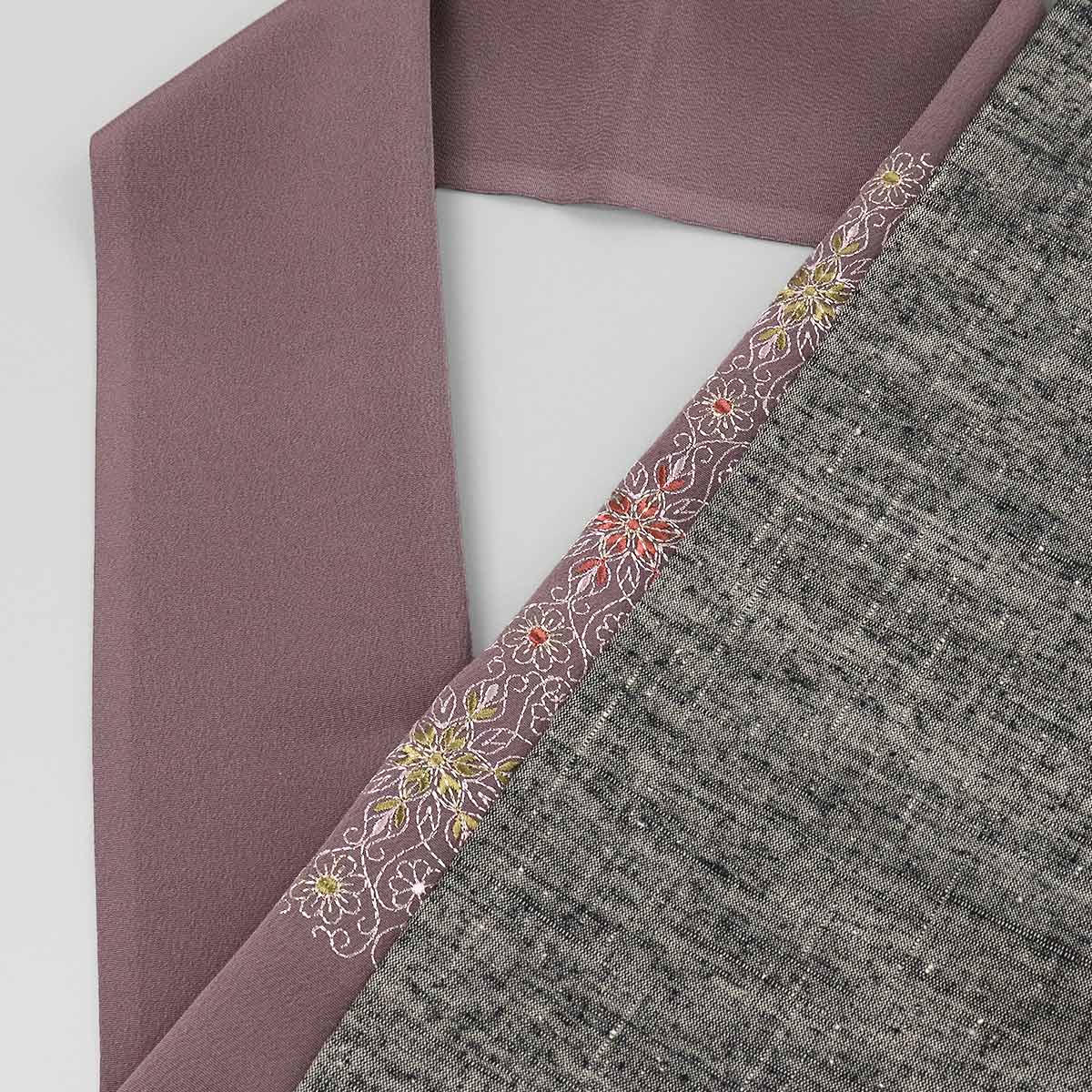 衿秀 公式 半衿 はんえり カモミール 花 梅鼠色 薄ピンク地 洗える ポリエステル 日本製 和装小物 和小物 えりひで 襟の衿秀