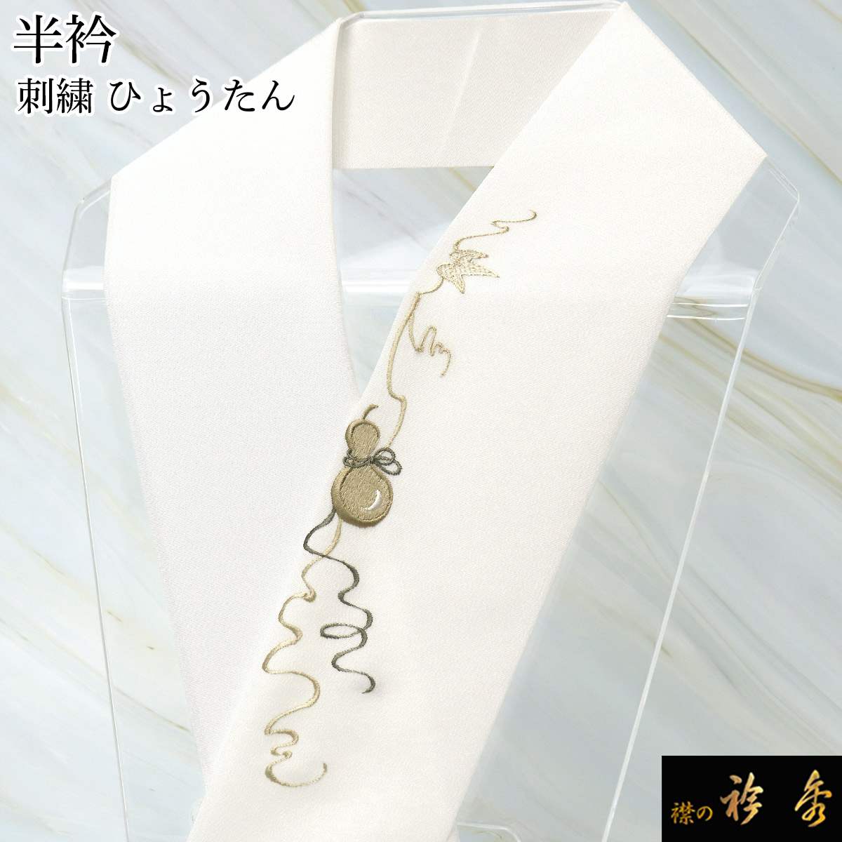 衿秀 公式 半衿 はんえり 刺繍 四君子 花 吉祥紋様 金糸 ホワイト 白地 洗える ポリエステル 日本製 和装小物 和小物 えりひで 襟の衿秀