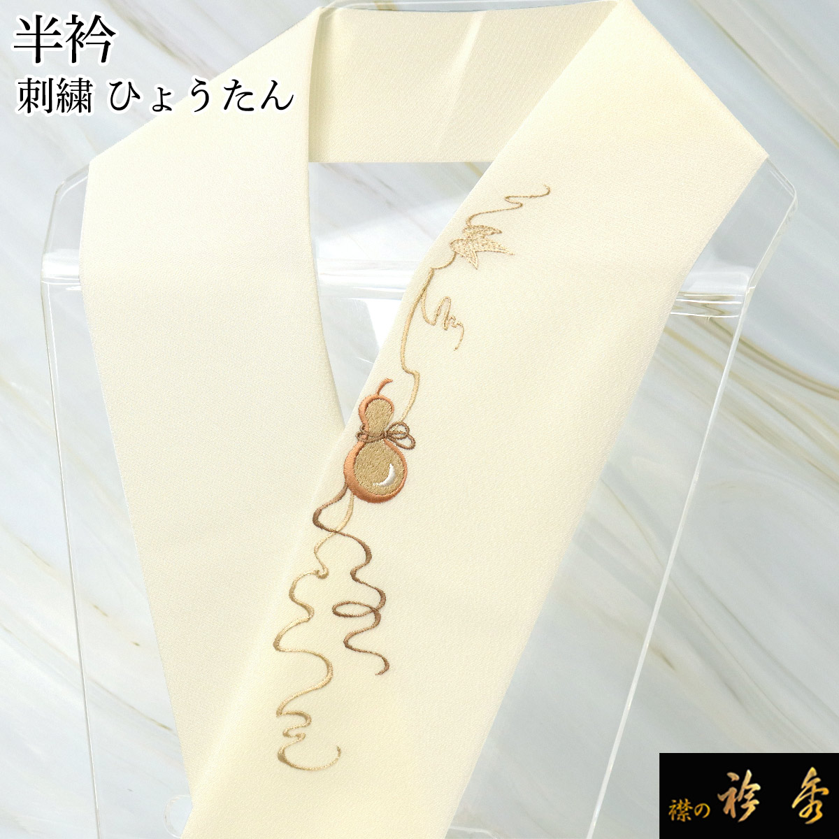 衿秀 公式 半衿 はんえり 刺繍 ひょうたん 瓢箪 鶸茶 白地 洗える ポリエステル 日本製 和装小物 和小物 えりひで 襟の衿秀