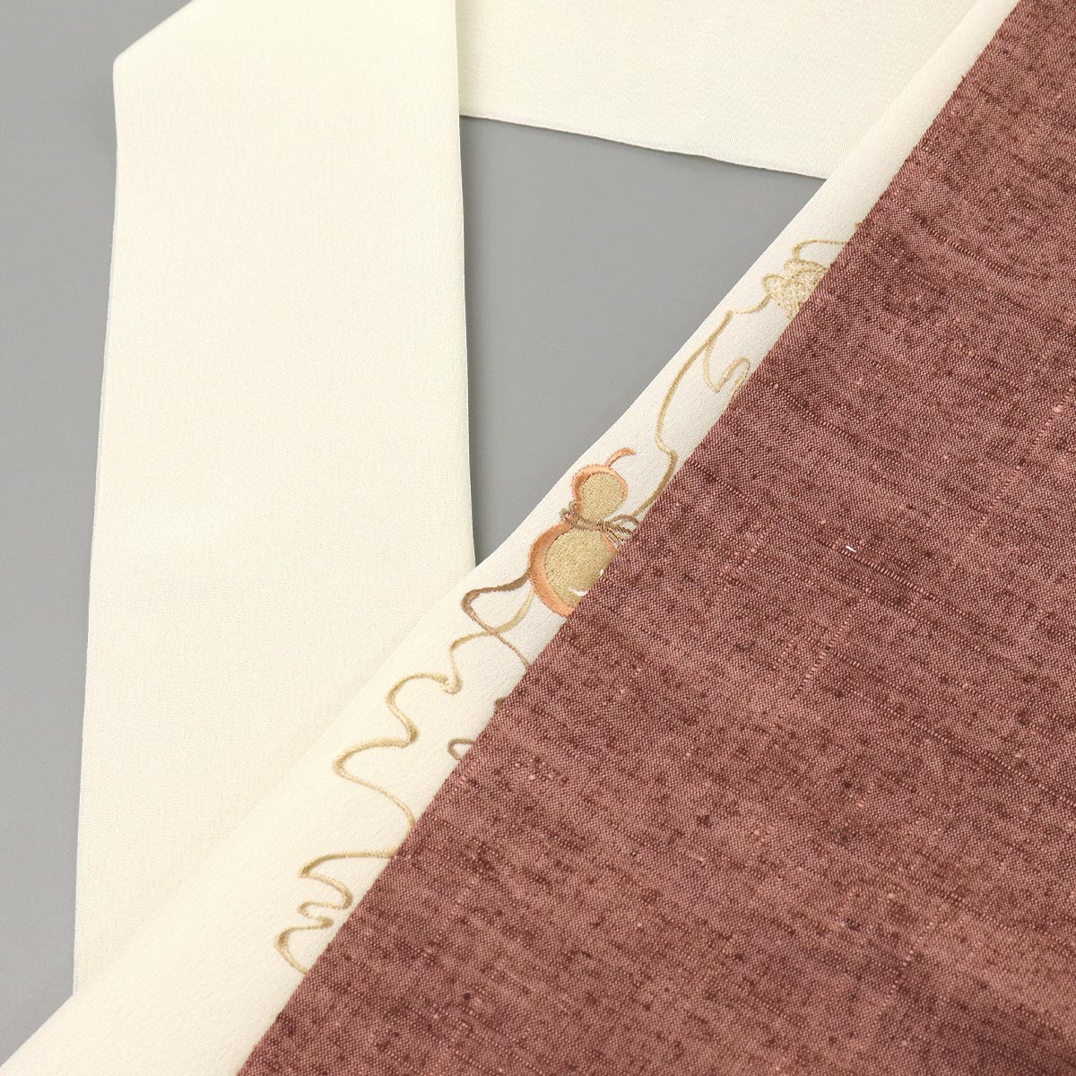 衿秀 公式 半衿 はんえり 刺繍 ひょうたん 瓢箪 胡桃色 錆利休地 洗える ポリエステル 日本製 和装小物 和小物 えりひで 襟の衿秀
