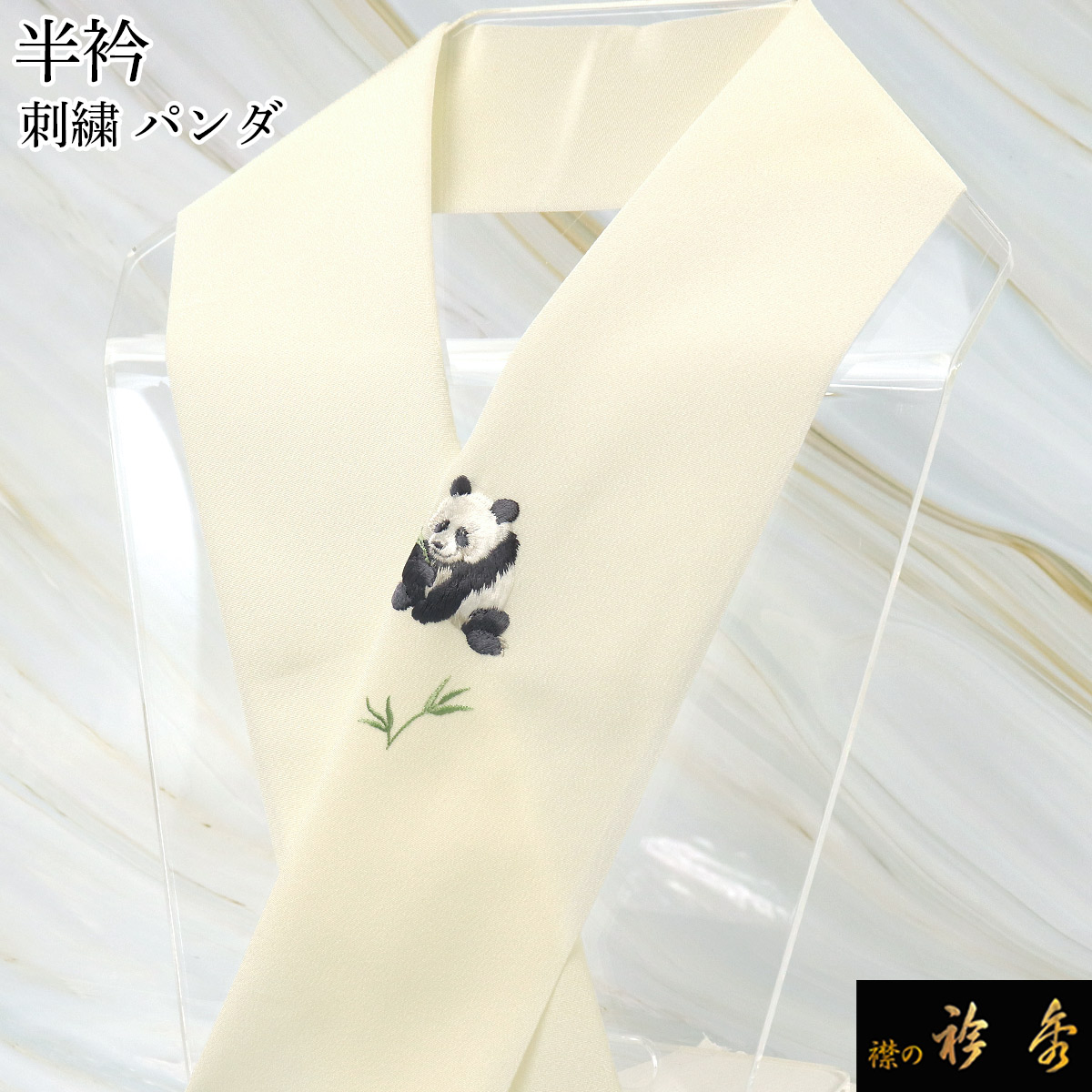 衿秀 公式 半衿 はんえり 刺繍 パンダ ぱんだ 白地 洗える ポリエステル 日本製 和装小物 和小物 えりひで 襟の衿秀