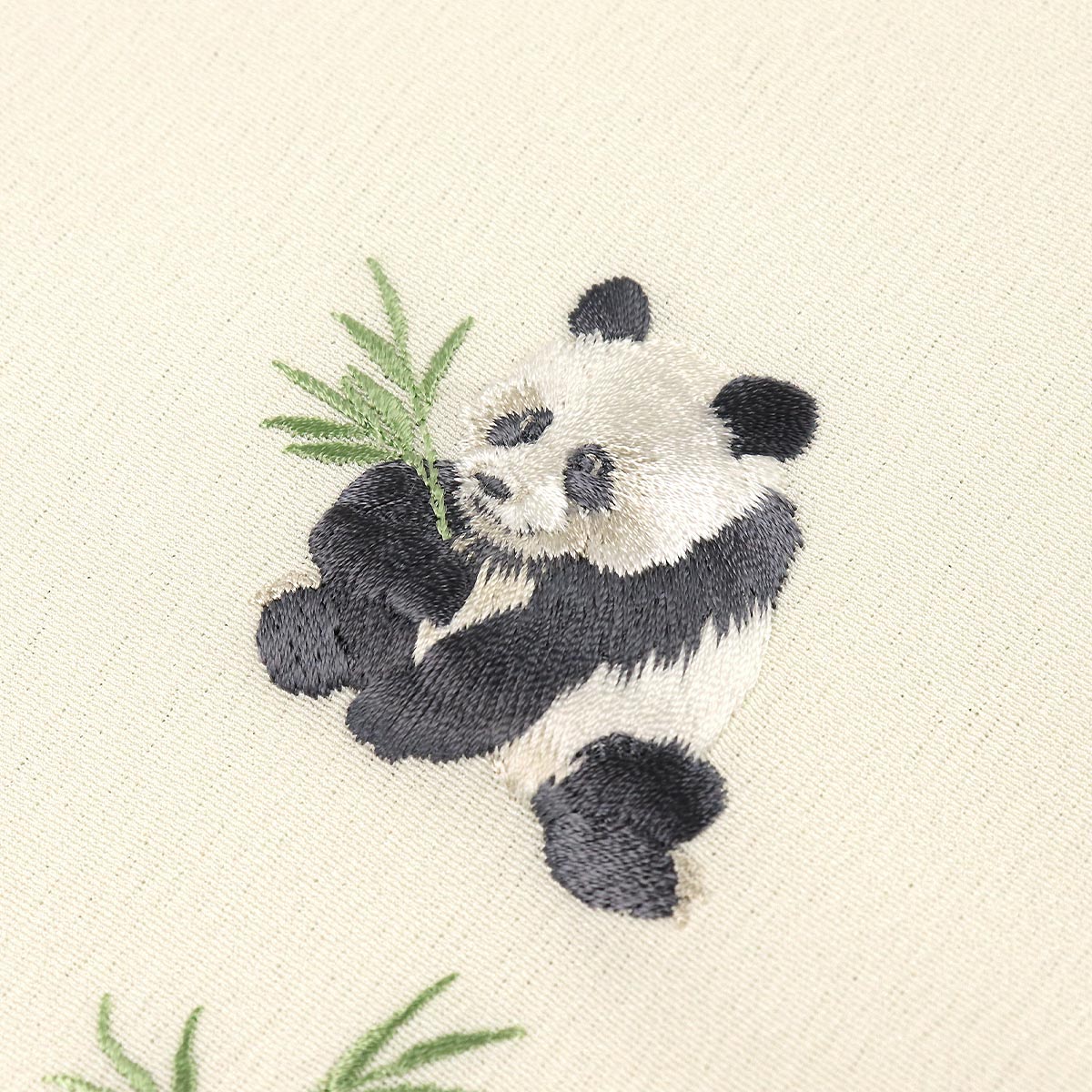 笹を持ったパンダが刺繍されています。