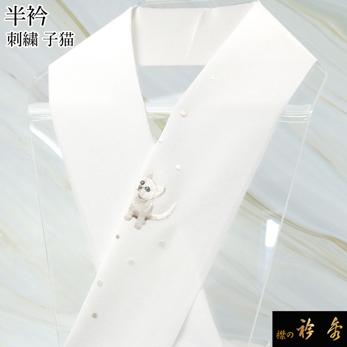 衿秀 公式 半衿 はんえり 刺繍 パンダ ぱんだ 白地 洗える ポリエステル 日本製 和装小物 和小物 えりひで 襟の衿秀