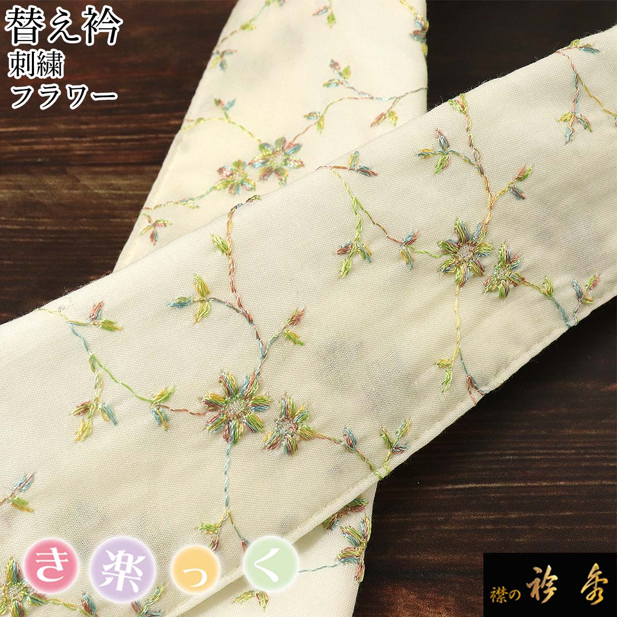 衿秀 公式 き楽っく 替え衿 替衿 かええり テキスタイル 刺繍 フラワー ベージュ きらっく 洗える 日本製 えりひで 襟の衿秀 すなお きものすなお