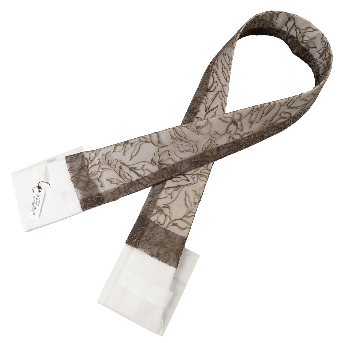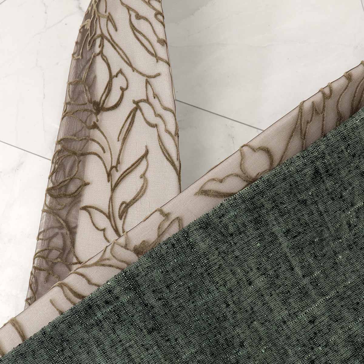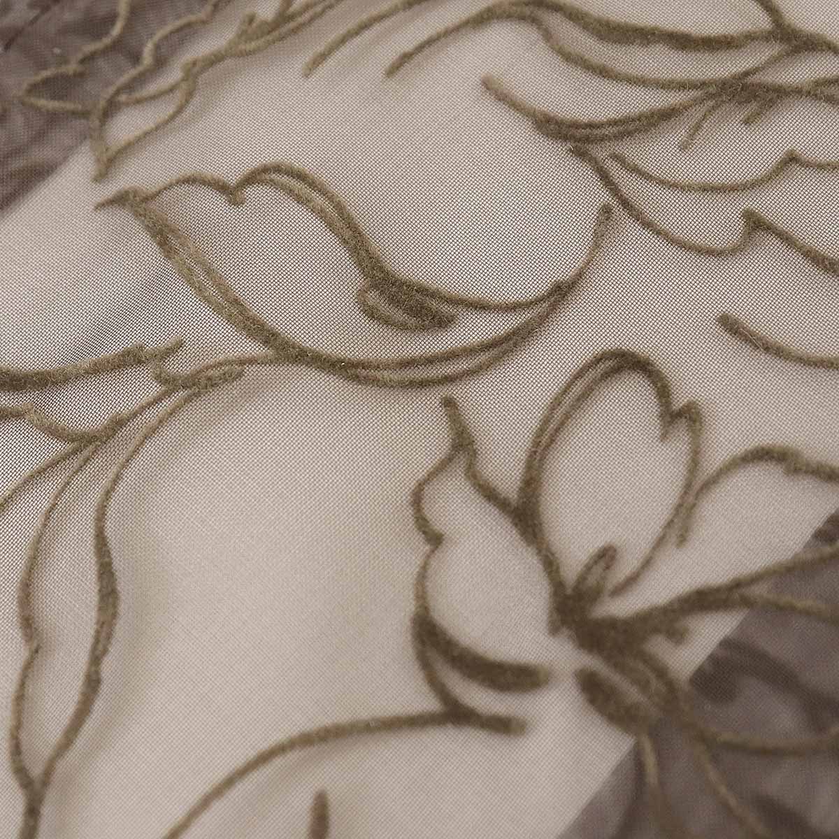 ブラウンのオーガンジー生地に、フロッキー素材でボタニカル柄をデザインしました。