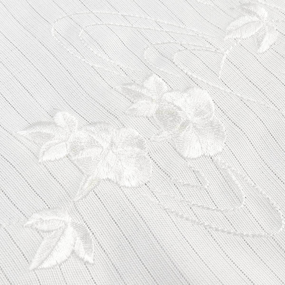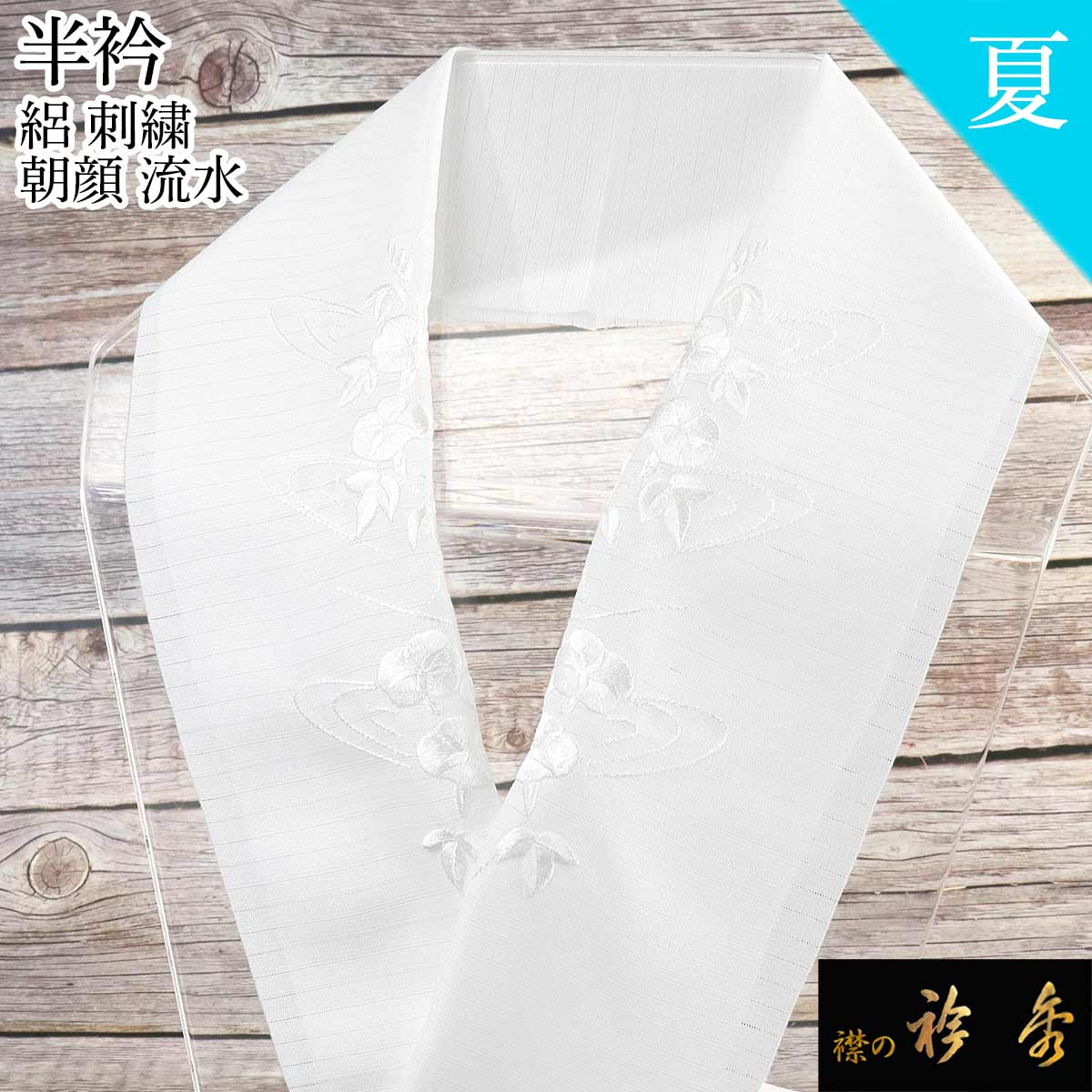 白地の絽半衿に朝顔と流水柄の刺繍。